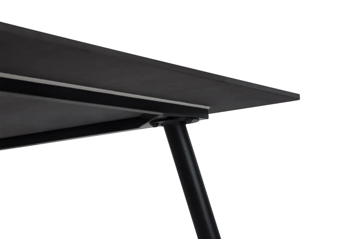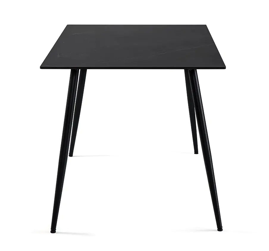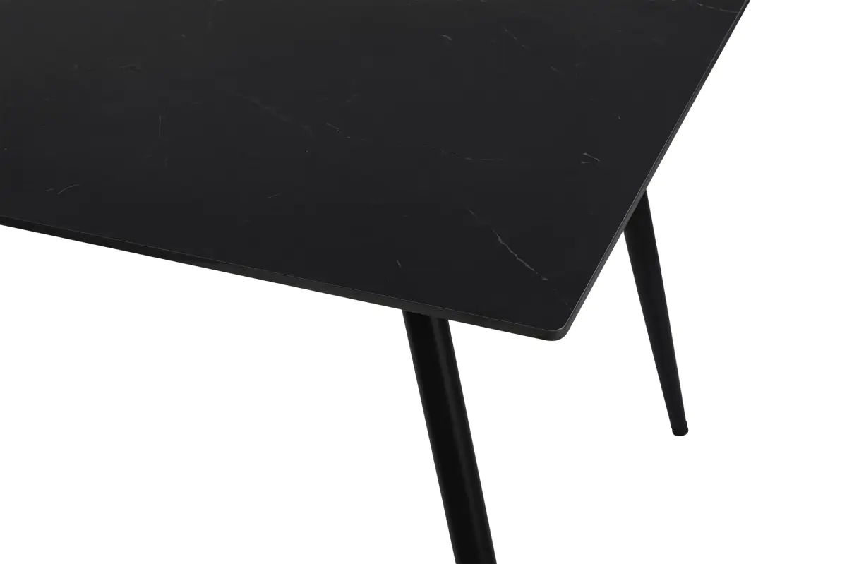 Deska v černé barvě z kvalitní slinuté keramiky v imitaci matného mramoru, která je odolná vůči poškrábání, působí luxusně a nadčasově. Stabilní kovové nohy v černém provedení.