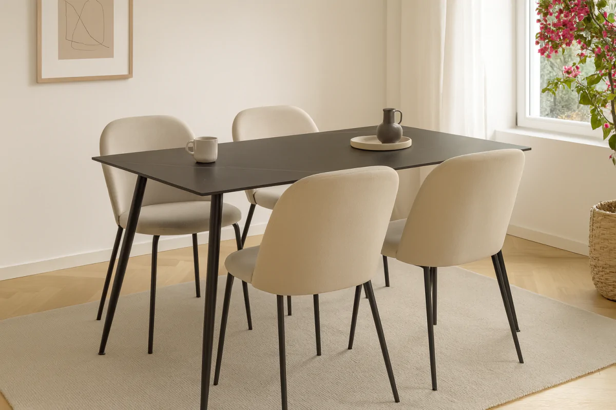 Vhodný do jídelny, kuchyně i menších interiérů. Spojuje praktičnost, odolnost a stylový vzhled.