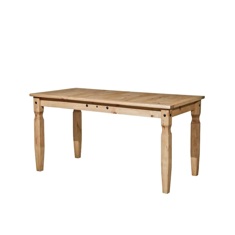 Moderní jídelní stůl je zhotoven z masivní borovice voskované v medovém odstínu.