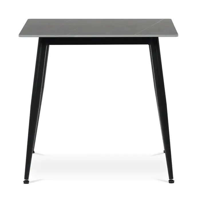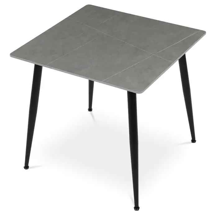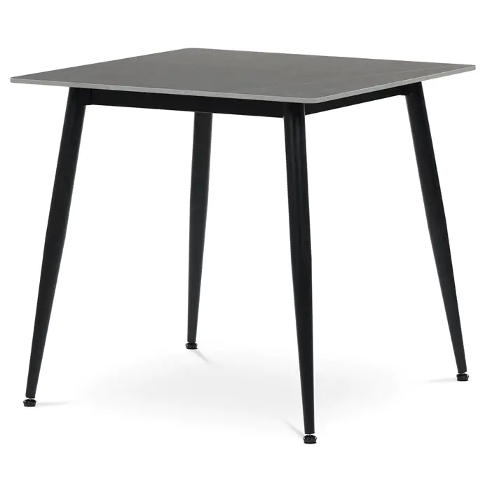 Jídelní stůl HT-398M GREY o rozměru 80x80 cm s keramickou deskou v šedém mramorovém dekoru nabízí moderní a odolné řešení pro každou jídelnu.