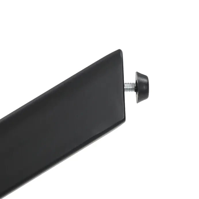 Stabilní kovová podnož v černé barvě je tvořena čtyřmi nohami se zkoseným profilem, které jsou vybaveny rektifikačními patkami pro vyrovnání nerovností podlahy a zajištění pevné stability.