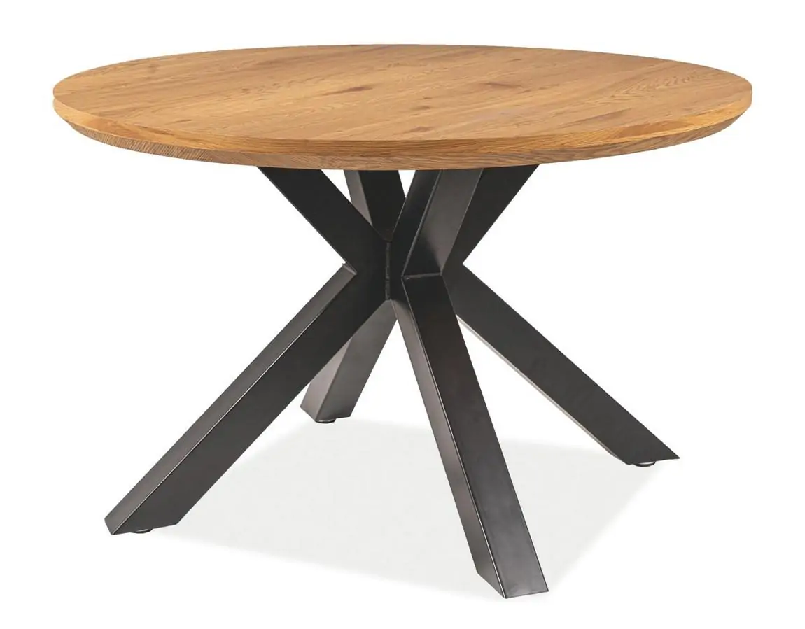 Kulatý jídelní stůl RITMO v elegantní linii zaujme svým tvarem a bude ozdobou každého interiéru. Deska stolu je vyrobena z přírodní dýhy v barvě dub, nohy stolu jsou z kovu v černé barvě. ...