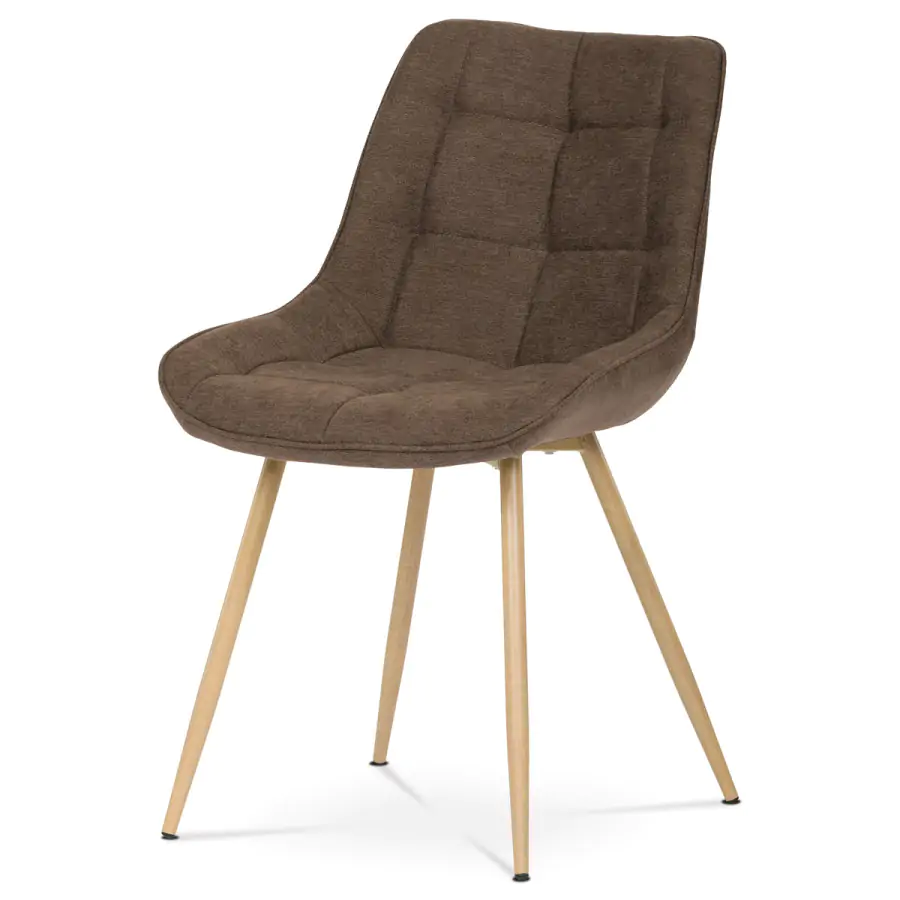 Designová skořepinová jídelní židle CT-394 BR2 je čalouněna hnědou látkou s výrazným prošitím.
