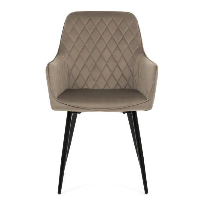 Jídelní židle DCH-215 CAP4 nabízí komfortní sezení díky čalounění z jemné sametové látky v cappuccino odstínu, která je doplněna designovým prošitím v koso čtverečkovém vzoru.