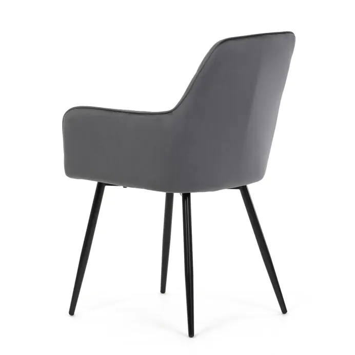 Ergonomicky tvarované opěradlo s integrovanými područkami podporuje pohodlné sezení během delších jídel i setkání. Sedák je dostatečně široký a vyplněný měkkou výplní, která přispívá k pohodlí. Židle je vhodná do moderních i klasických interiérů, kde vynikne její kombinace sametu a kovu.