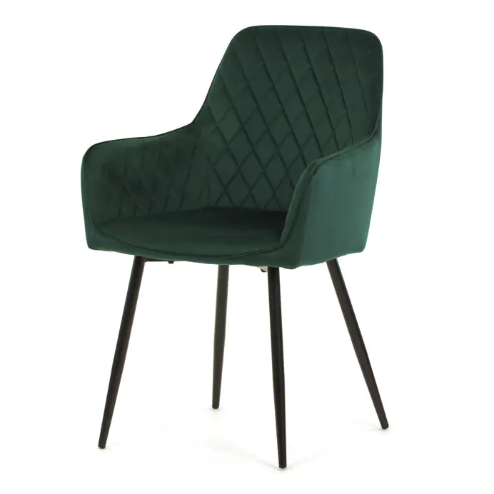 Jídelní židle DCH-215 GRN4 nabízí pohodlné sezení díky čalounění z kvalitní zelené sametové látky, která je příjemná na dotek a snadno se udržuje.