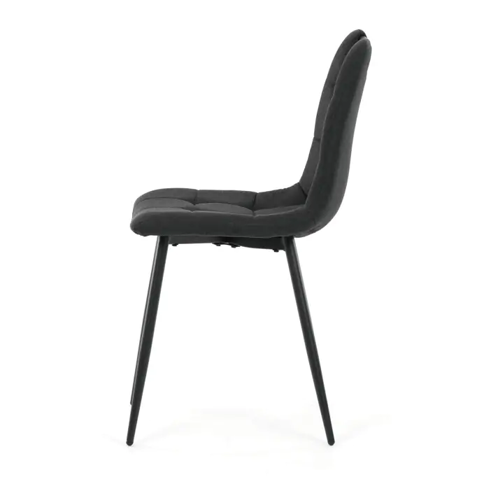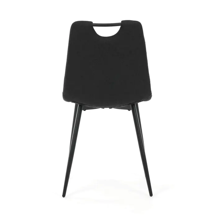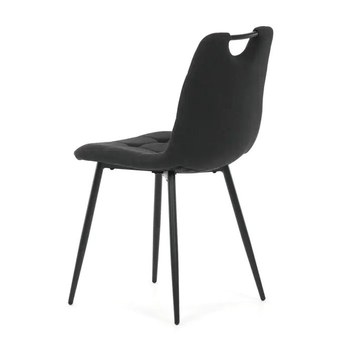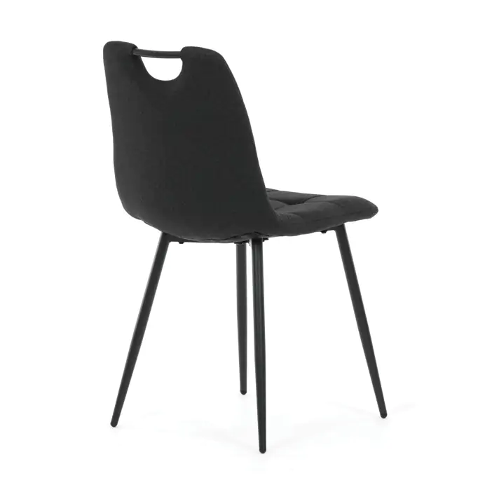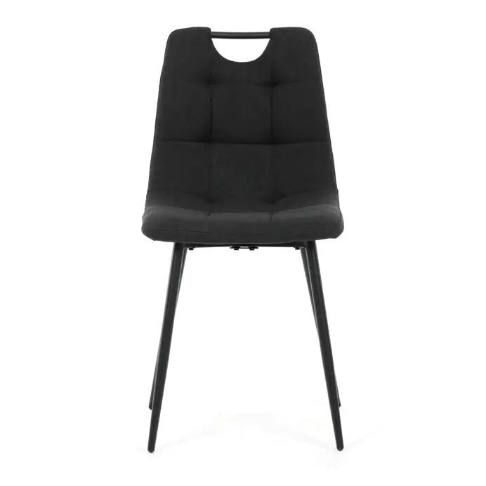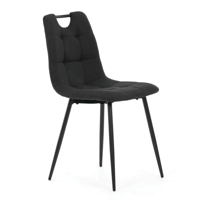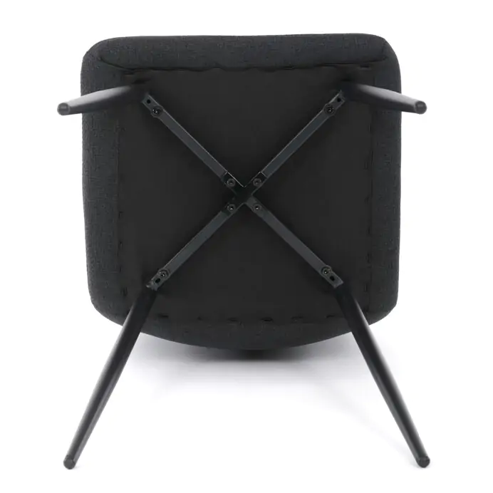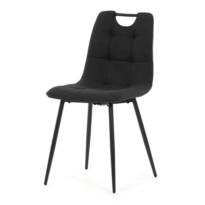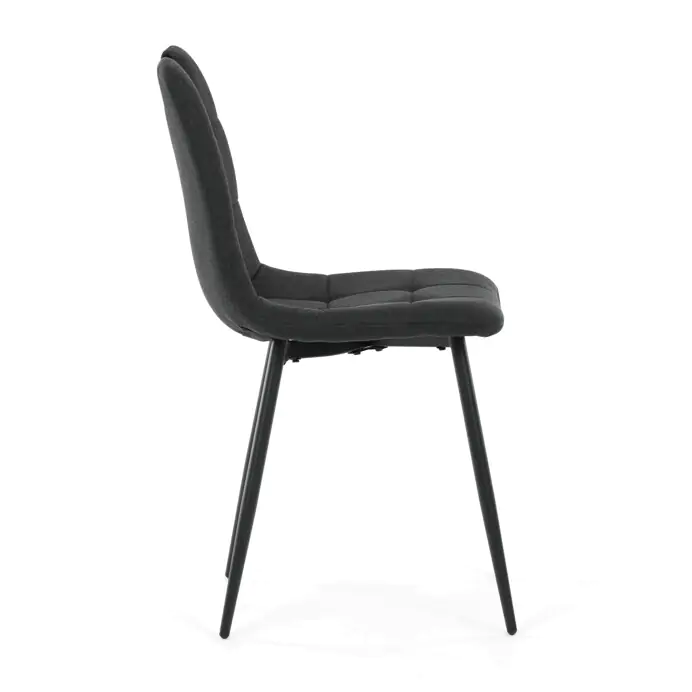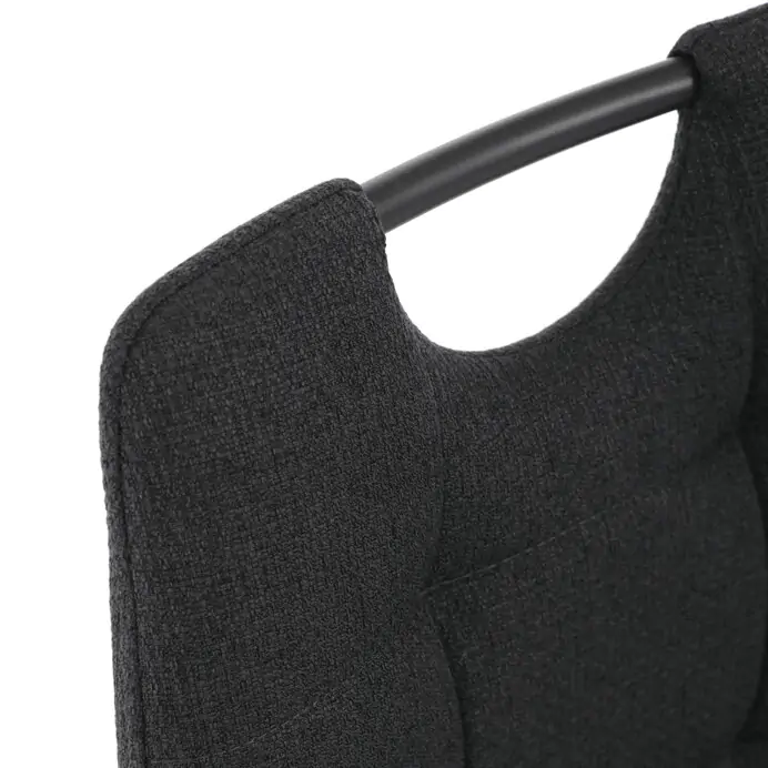 Sedák a opěradlo jsou potažené černou látkou, která je snadno udržovatelná a doplněná designovým prošitím pro zvýraznění estetického dojmu. Pevné kovové nohy s matnou černou povrchovou úpravou zajišťují stabilitu a dlouhou životnost.
