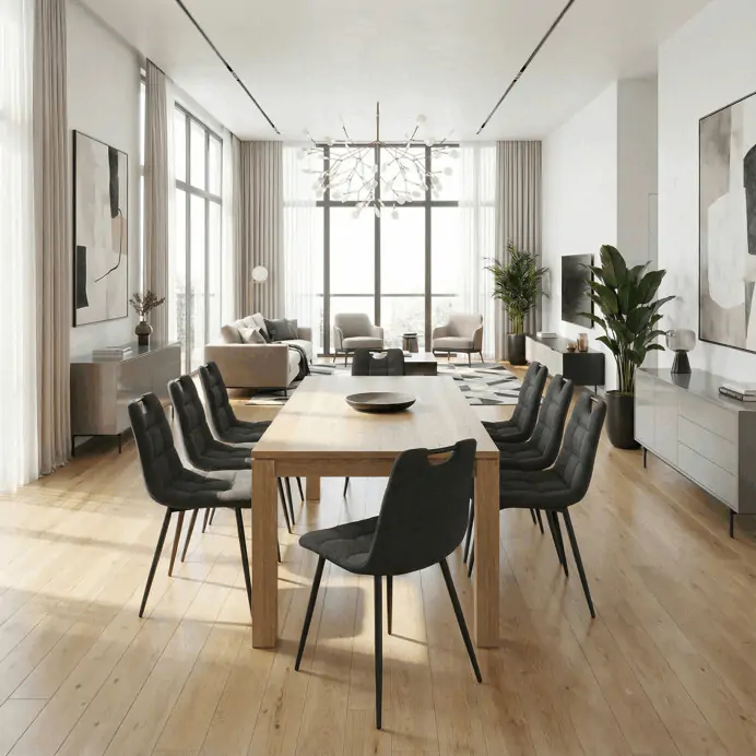Jídelní židle DCL-V2017 BK2 nabízí kombinaci pohodlí a praktičnosti v moderním designu.