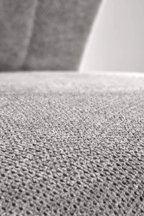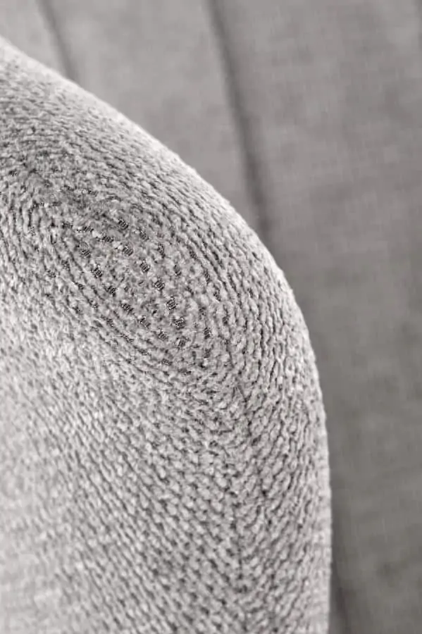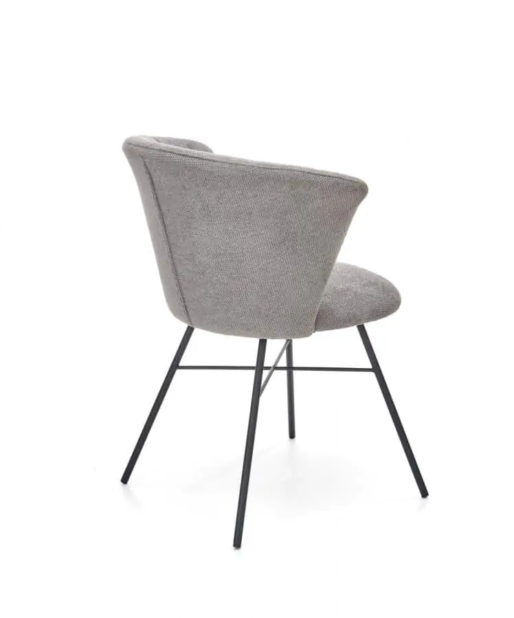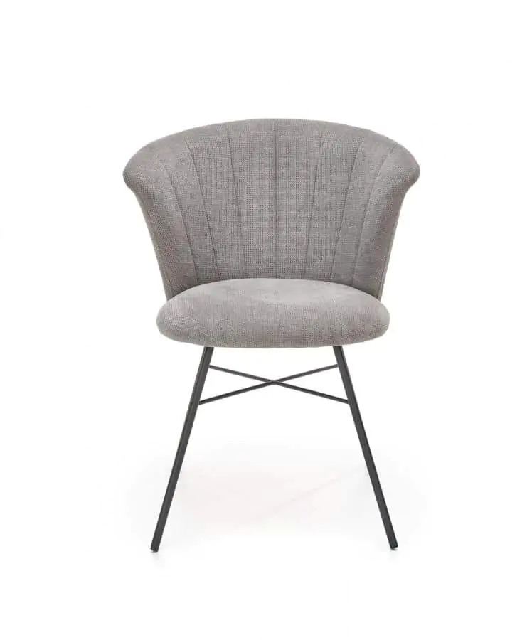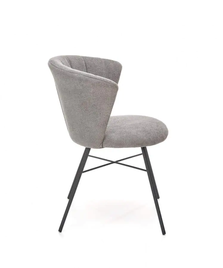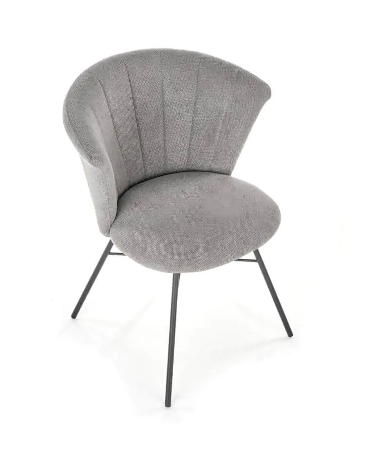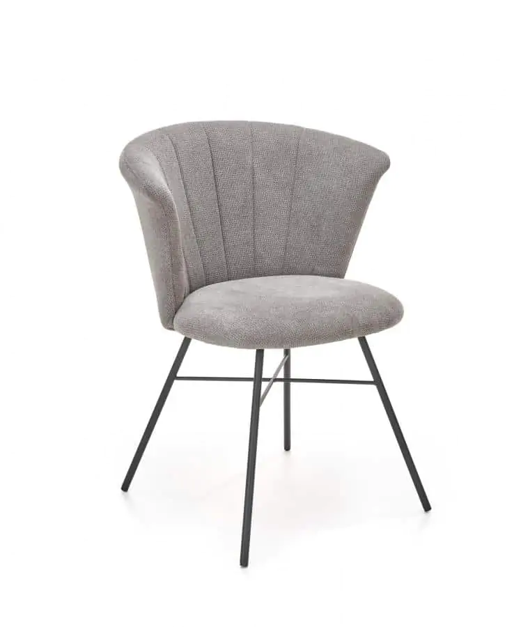 Moderní jídelní židle čalouněná šedou látkou. Opěrák zdobí ze zadní strany dekorativní prošití.  Stabilitu zajišťují nohy z oceli v šedém odstínu. Židle je dodávána v demontu.