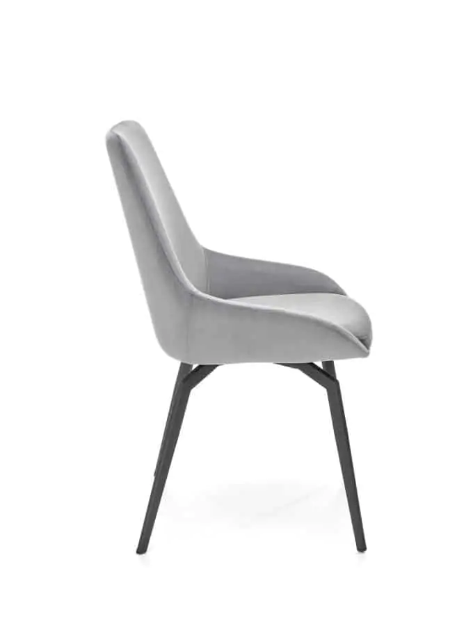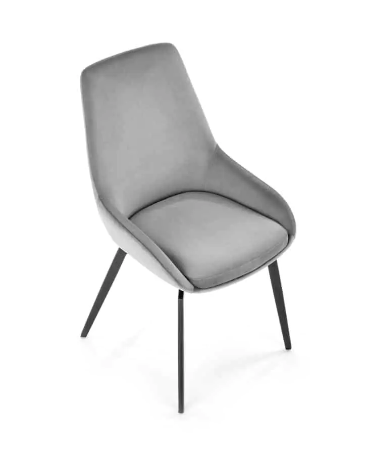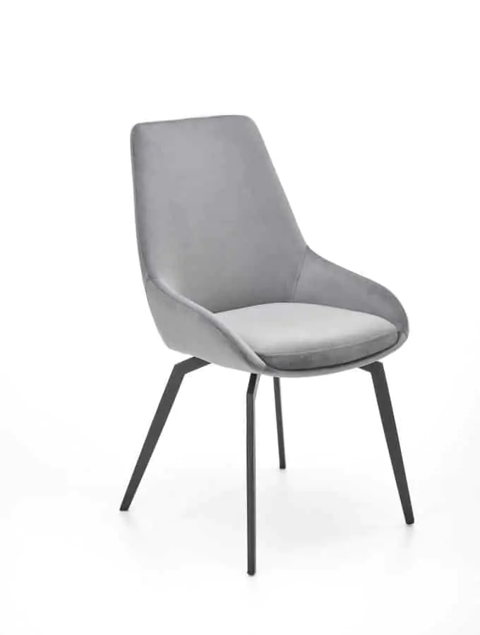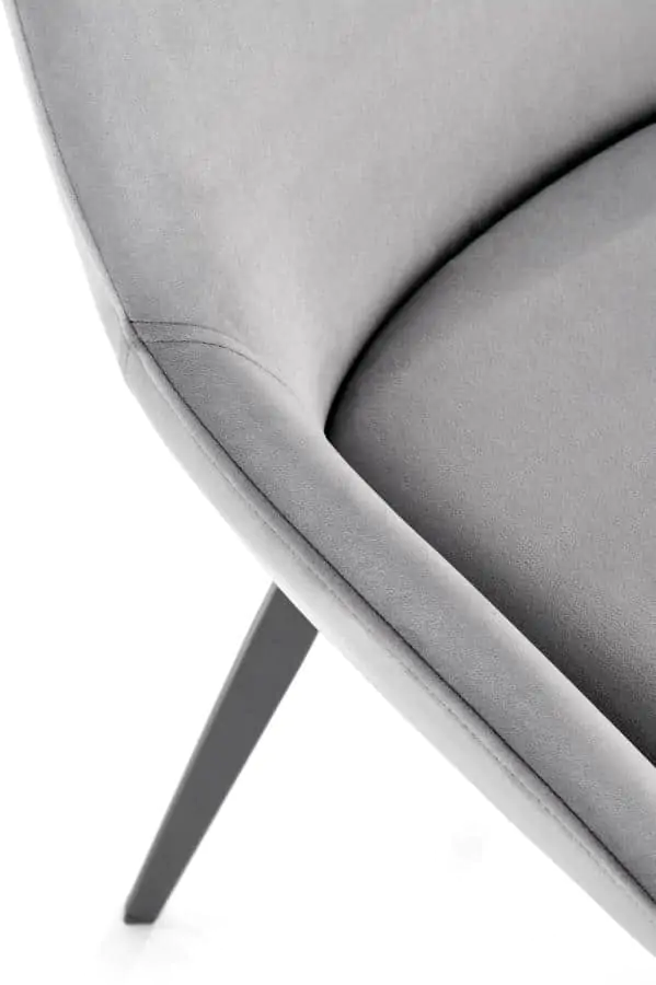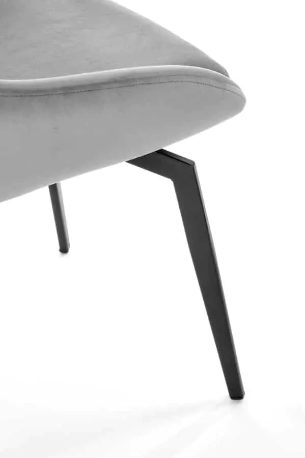 Jednoduchý design, neutrální šedá sametová látka Velvet a jemná černá podnož dodávají židli lehkost.