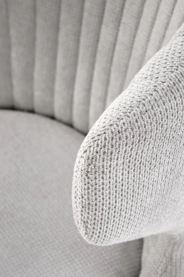 Kombinace světle šedé látky a černé podnože vytváří harmonický a elegantní vzhled.