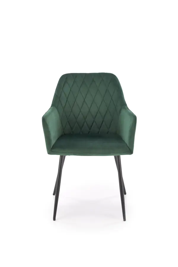 Spojení moderního designu a pohodlného sezení zajistí jídelní židle K558. rozměry: 59/60/86 cm materiál: látka - samet / práškově lakovaná ocel barva: zelená HLR 57 / černá výška...