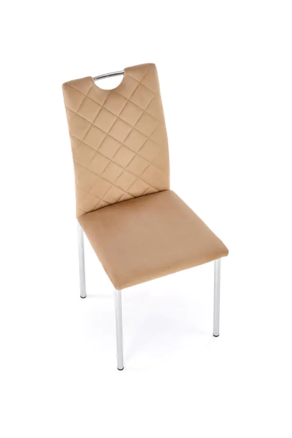 Užijte si pohodlí a moderní design s jídelní židlí K578. Tato stylová židle v béžovém provedení je čalouněná sametovou látkou a vybavená praktickým madlem pro snazší manipulaci.