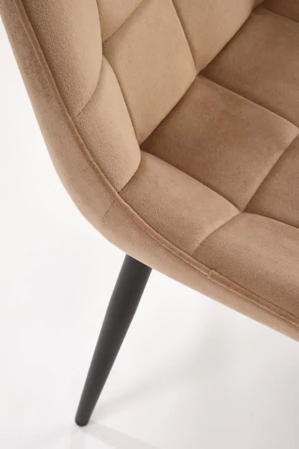 Příjemné čalounění z sametové látky je nejen příjemné na dotek, ale díky ozdobnému prošití do čtverců také vyniká esteticky. Stabilitu a trvanlivost zajišťují kovové nohy, které dodávají moderní vzhled a dlouhou životnost. Tato židle bez područek kombinuje funkčnost a styl pro každý interiér.