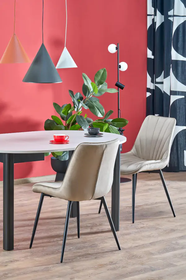 Elegantní židle K589 přináší stylový doplněk do vaší jídelny. Příjemné čalounění z sametové látky je nejen příjemné na dotek, ale díky ozdobnému prošití také vyniká esteticky....