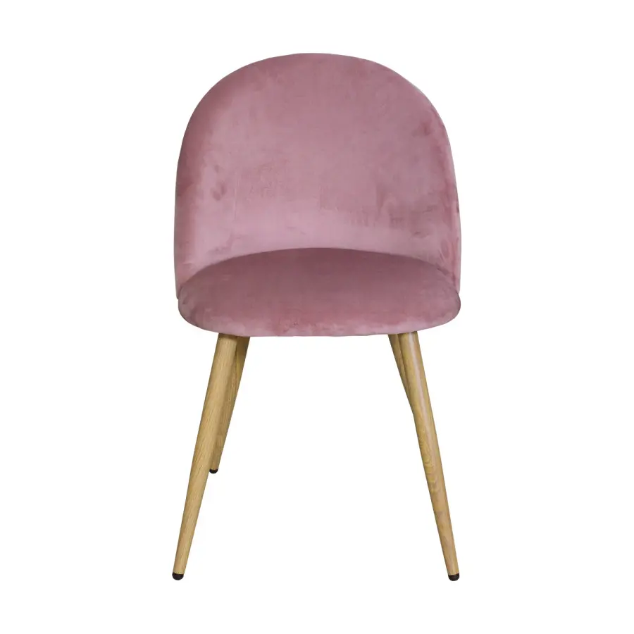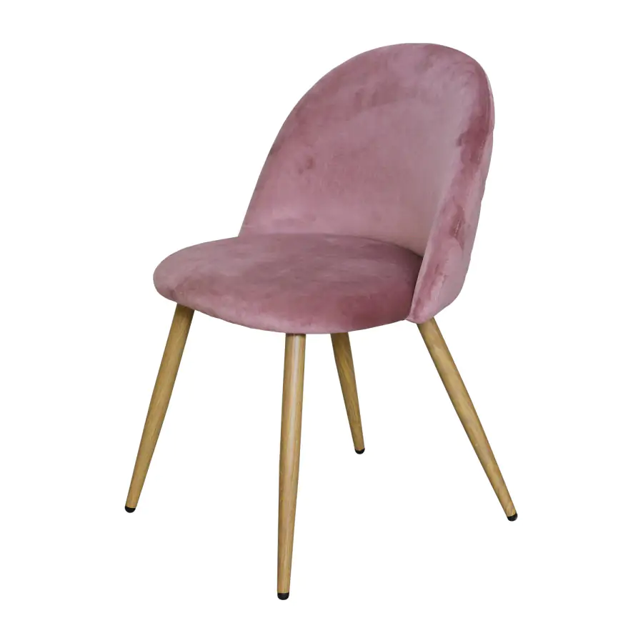 Růžové jídelní židle LAMBA lze za jídelním stolem jednoduše kombinovat a přidat i jídelní židle LAMBA s šedým potahem.