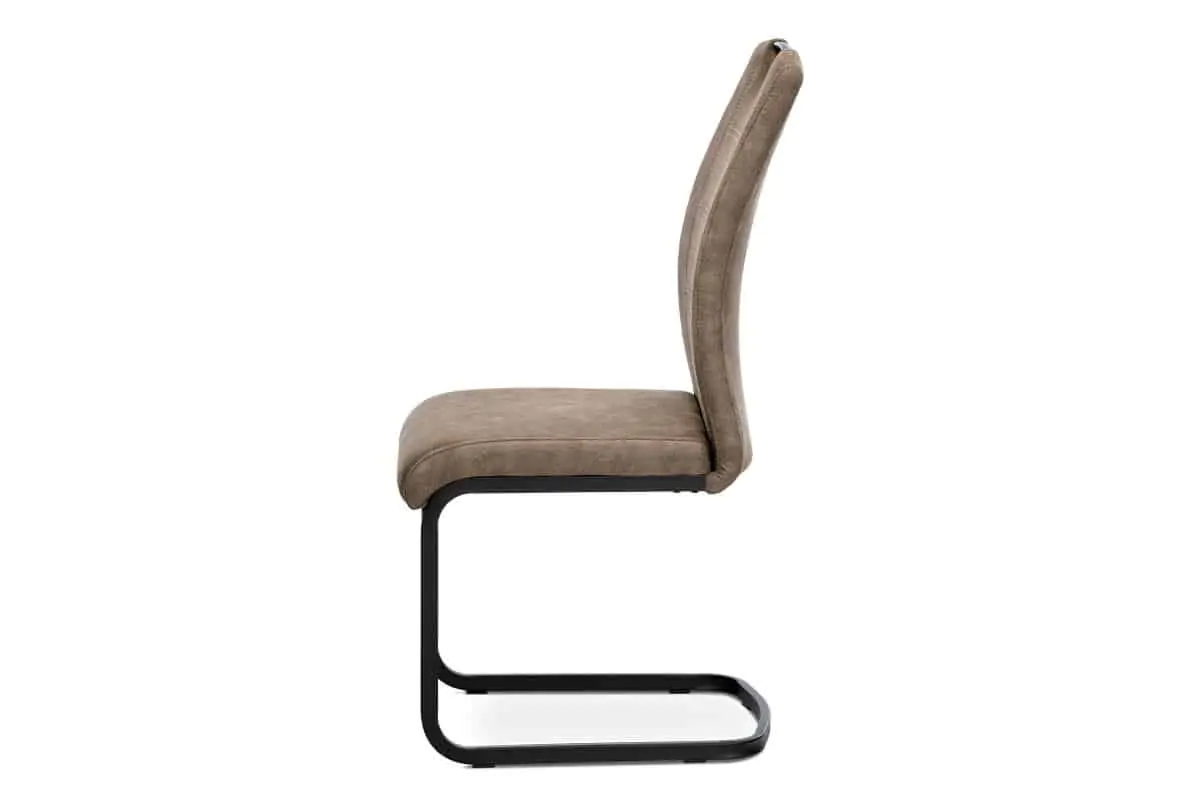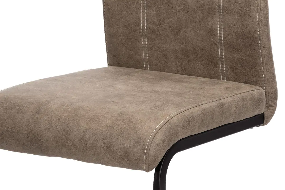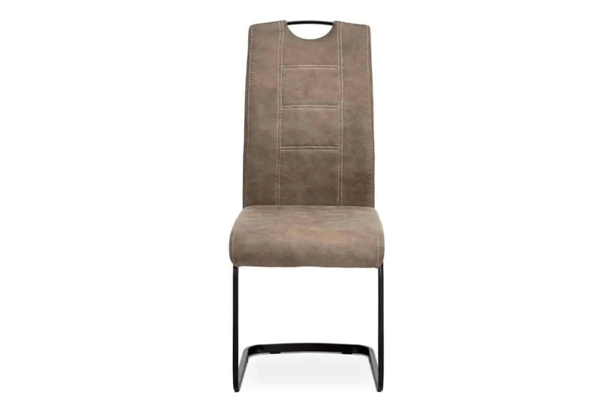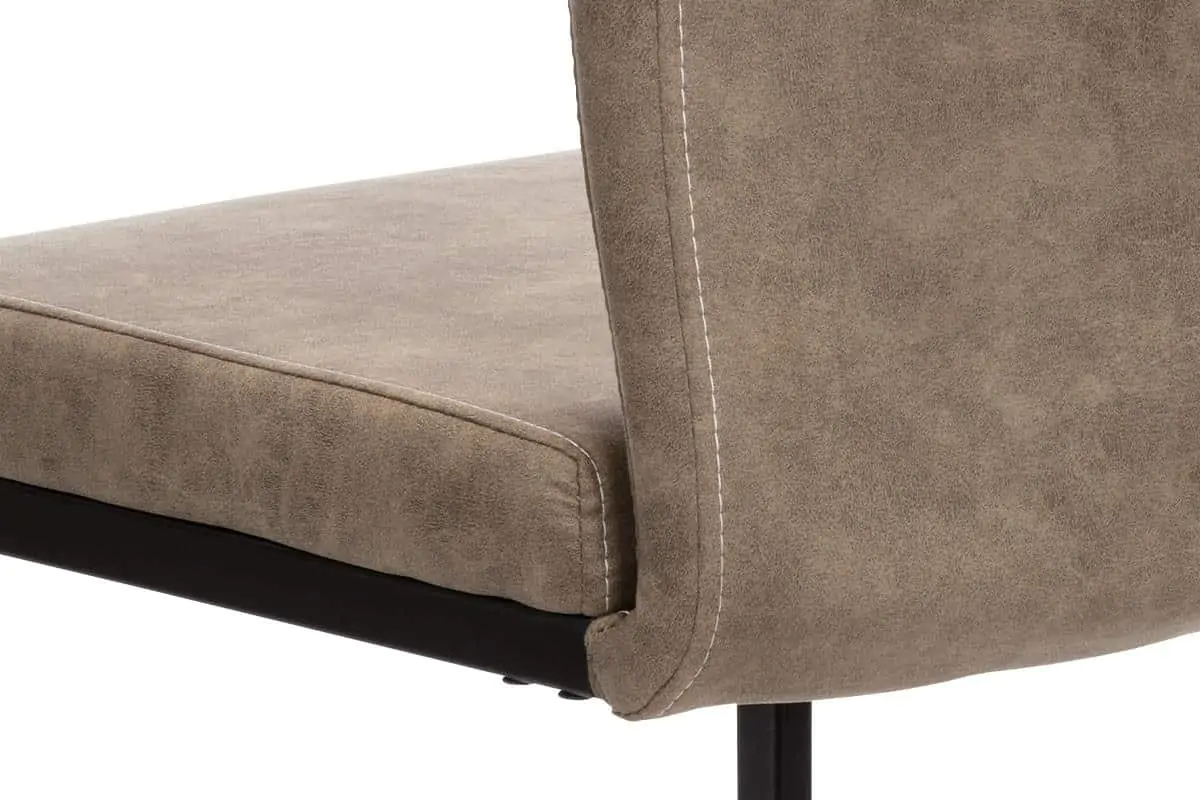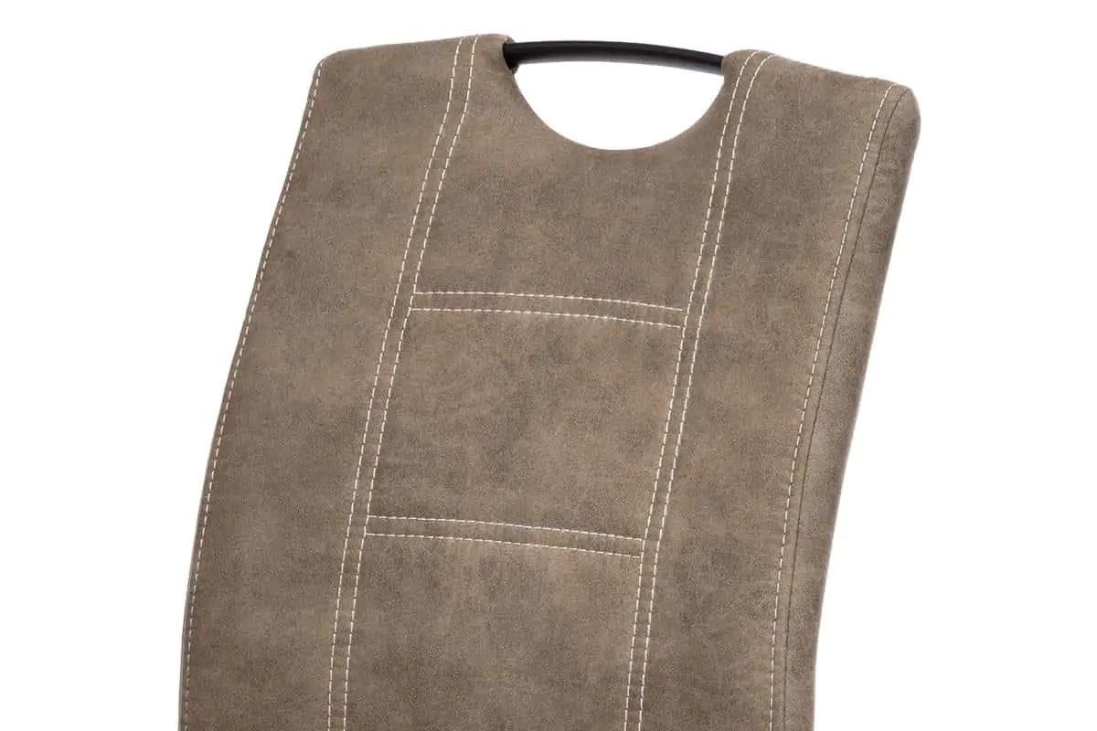 Jídelní židle v industriálním stylu. Potah je z lanýžové látky v trendy dekoru vintage kůže, s bílým dvojitým H a obvodovým prošitím opěráku i sedáku. Polstrování je z PU pěny. Industriální vzhled...