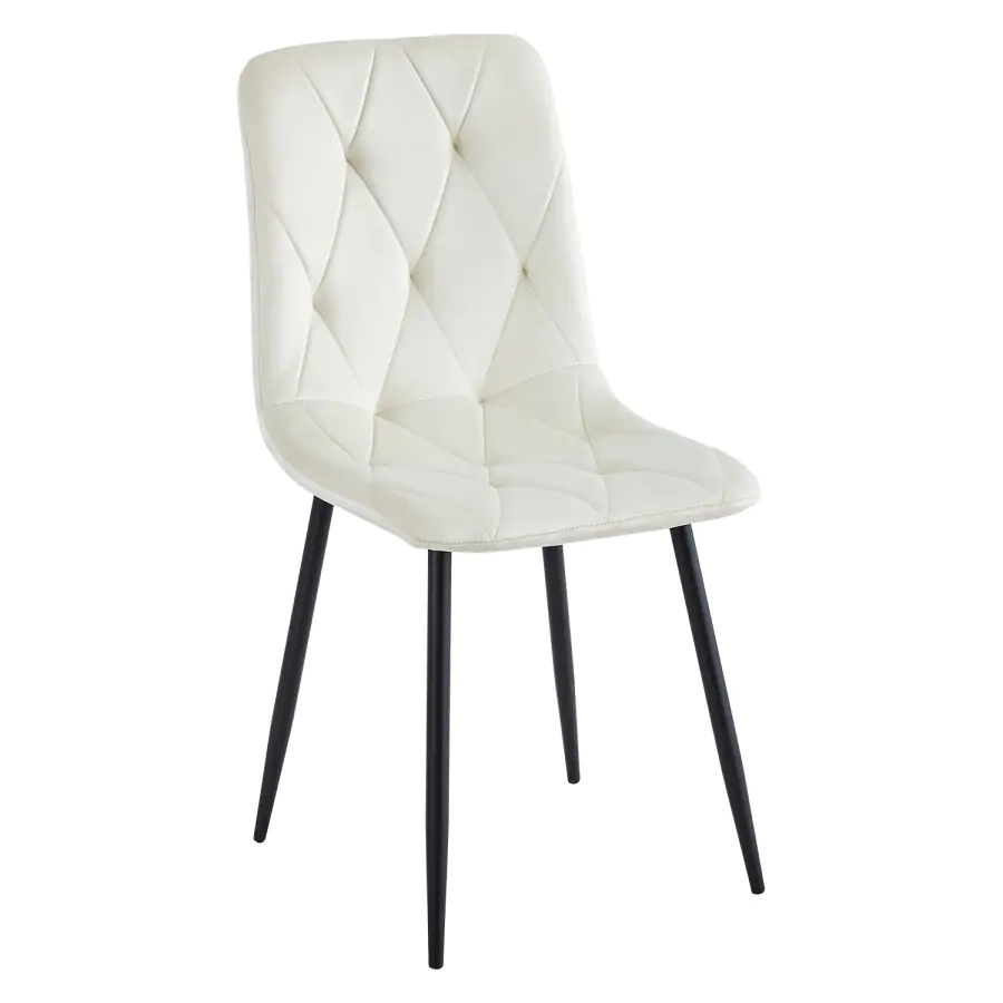 Sedák čalouněn textilní látkou nadčasové béžové barvy zajistí patřičný komfort a o stabilitu při sezení se postarají 4 kovové nohy v černém provedení.
