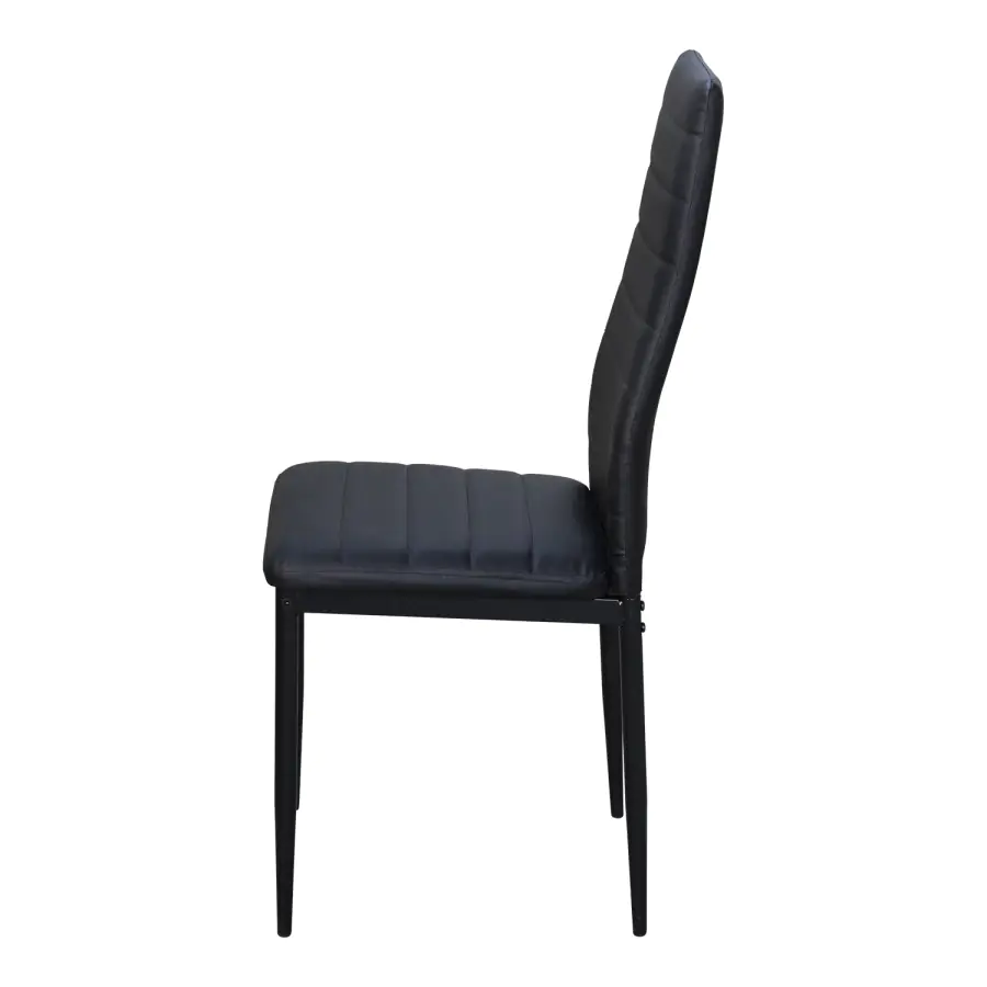 Černé židle s potahem z imitace kůže budou ozdobou každého jídelního koutu. Zkuste třeba nestárnoucí kombinaci černých jídelních židlí a bílého jídelního stolu.