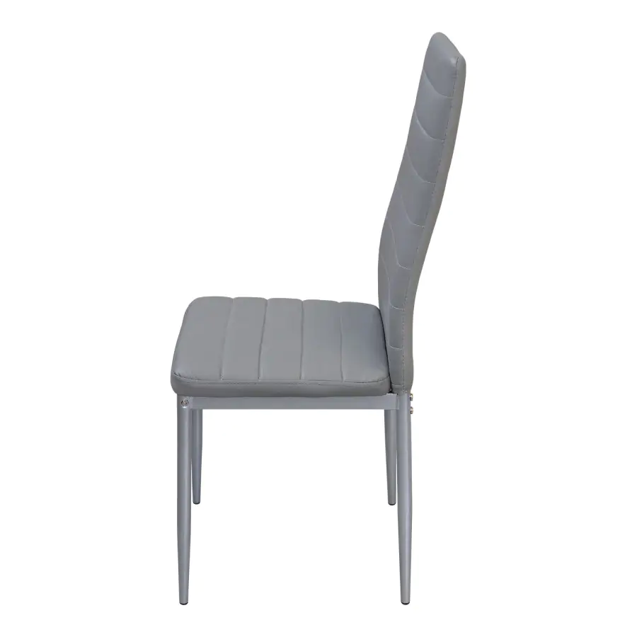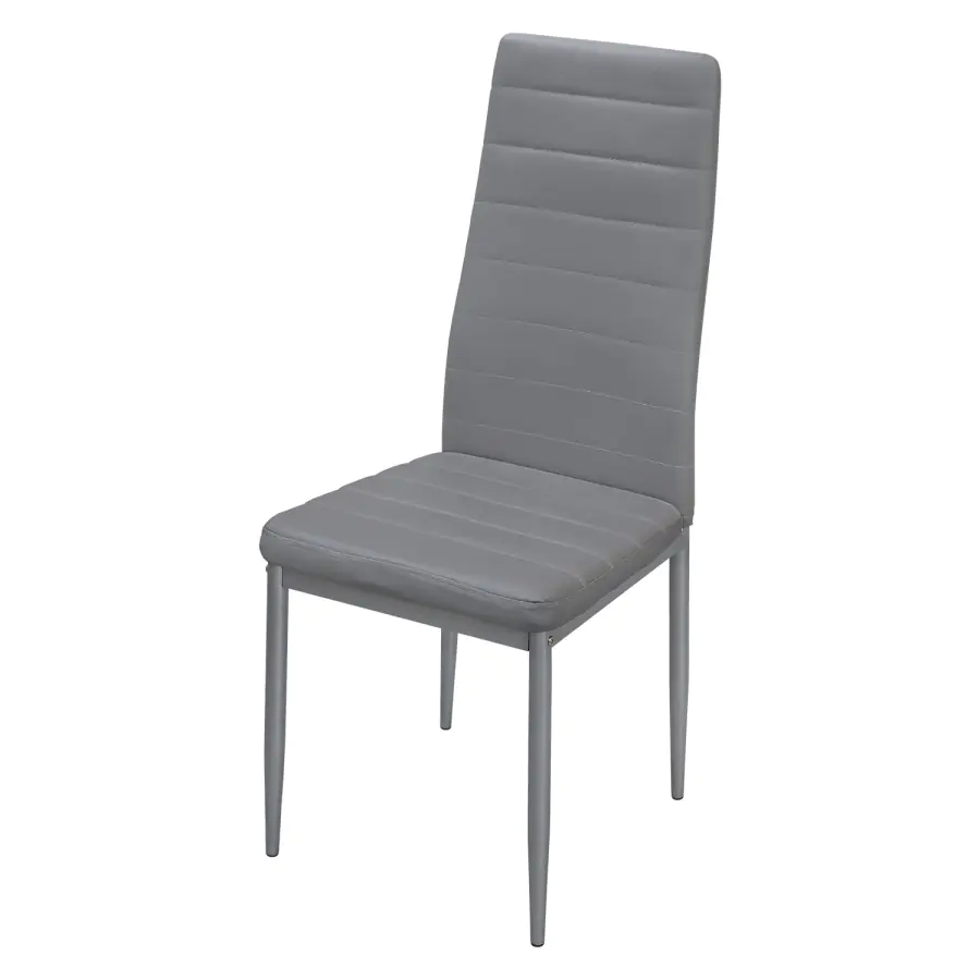Jídelní židle SIGMA v jednoduchém moderním provedení je vyrobena v kombinaci kovové konstrukce a šedé eko kůže.