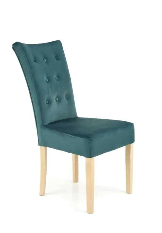 Jídelní židle Vermont je dokonalým spojením elegance a pohodlí. Je vyrobena z bukového dřeva, opěrka a sedák jsou čalouněné příjemnou a luxusní látkou Velvet v zeleném odstínu.