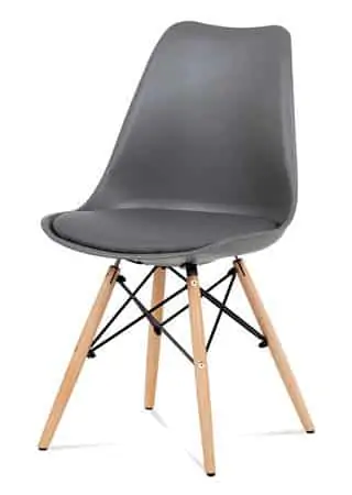 Zajímavě řešená podnož z masivního bukového dřeva v barvě natural s černými kovovými výztuhami, skořepina je vyrobena z ABS plastu, sedák očalouněn koženkou. V nabídce jsou dvě barevná provedení (bílý plast / bílá koženka nebo šedý plast / šedá koženka).