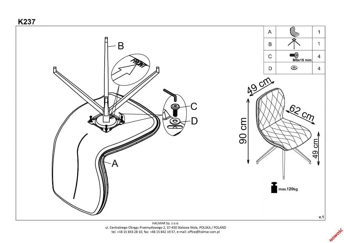 Originální design jídelní židle K-237 zaujme na první pohled. Podnož je zhotovena z práškované oceli, je čalouněna ekokůží ve třech barevných provedeních.