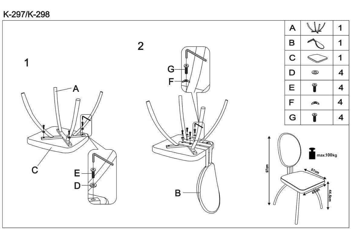 Jídelní židle K298 je čalouněna světle-šedou ekokůží, kostra židle je zhotovena z práškované ocele v grafitové barvě.  Dodáváno v demontu. Jelikož židle jsou montované z několika komponentů,...