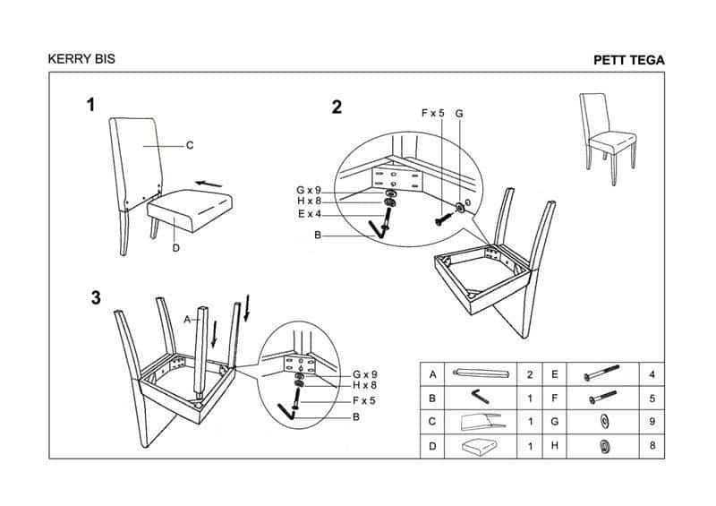 Jelikož židle jsou montované z několika komponentů, jejich určení je výhradně pro domácí interiéry a nejsou tudíž vhodné do společenských prostor.