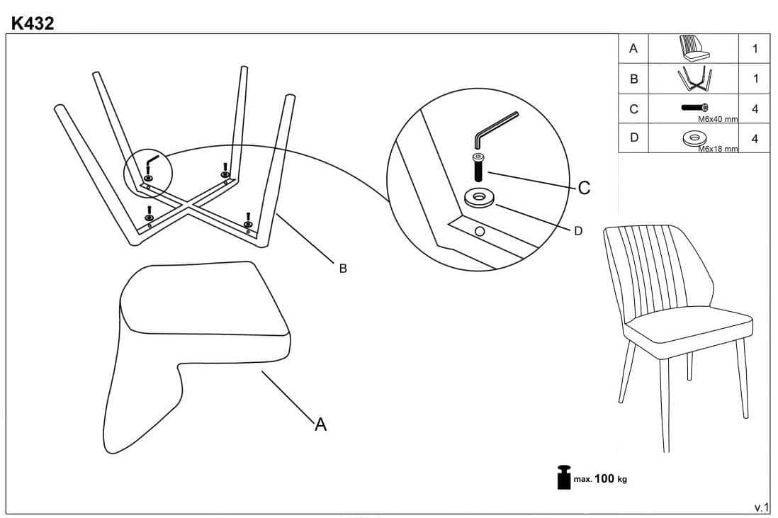 wymiary: 48/57/85/49 cm, materiał: tkanina velvet / stal malowana proszkowo, kolor: granatowy Moderní designová jídelní židle K432 v elegantním provedení. Kovové nohy v černé barvě jsou...