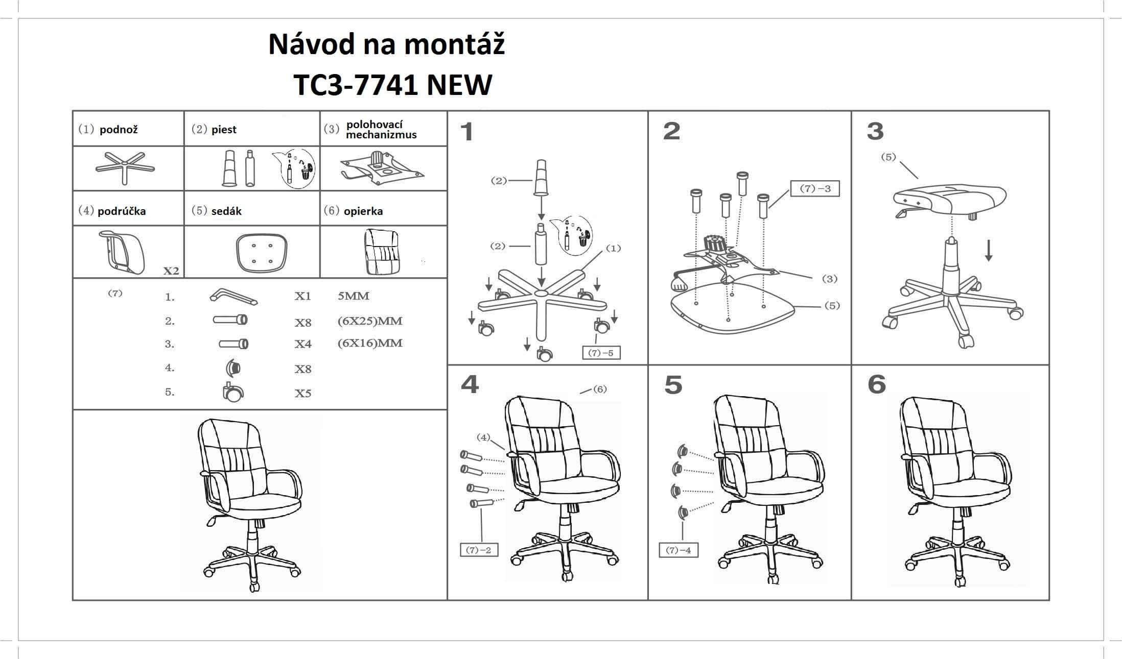 Stabilita křesla je zaručena pevným plastovým křížem s pěti kolečky. Křeslo je výškově nastavitelné.