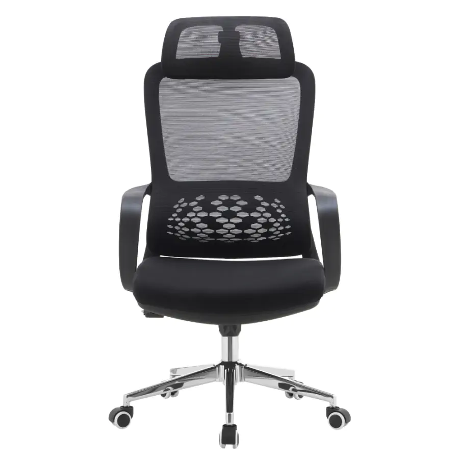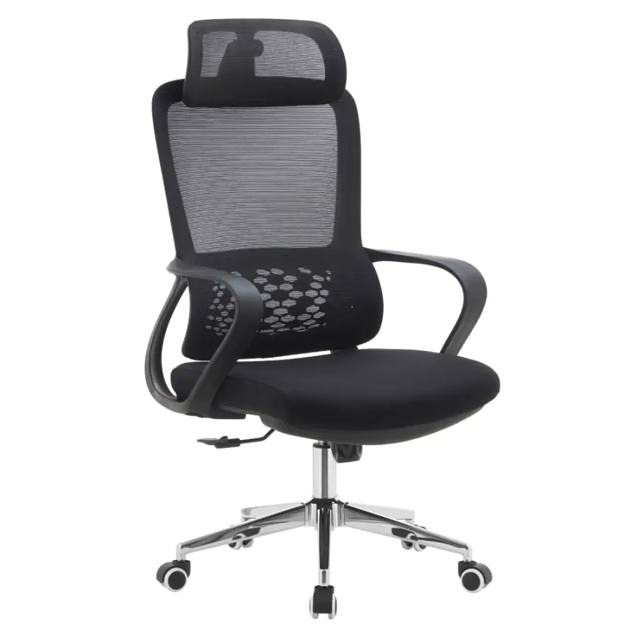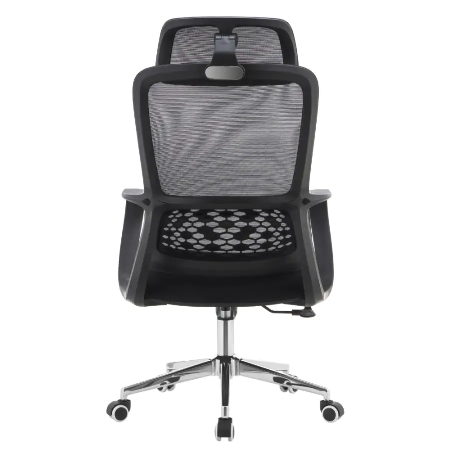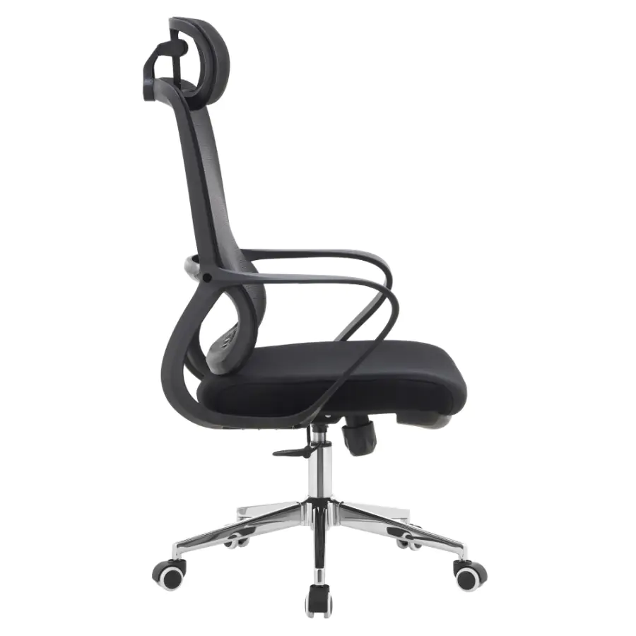 Kancelářské křeslo FOSTER TYP 1 je navrženo pro ty, kteří chtějí sedět pohodlně a zdravě i během dlouhých pracovních hodin. Díky nastavitelné opěrce hlavy a ergonomicky tvarované bederní části podporuje správné držení těla a ulevuje páteři. Kombinace černé síťoviny a látky s chromovou podstavou působí elegantně, zatímco univerzální kolečka jsou uzpůsobena pro tvrdé i měkké podlahy, takže pohyb po kanceláři bude plynulý a bez námahy.