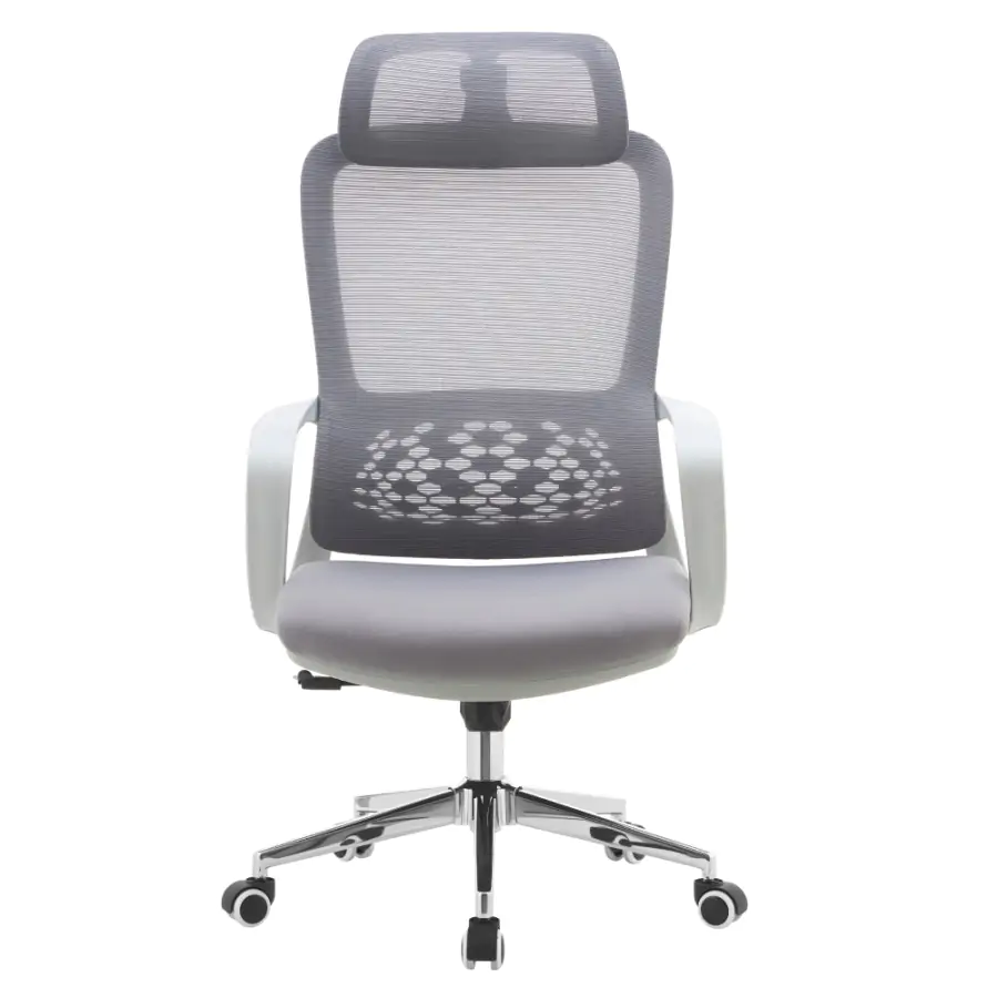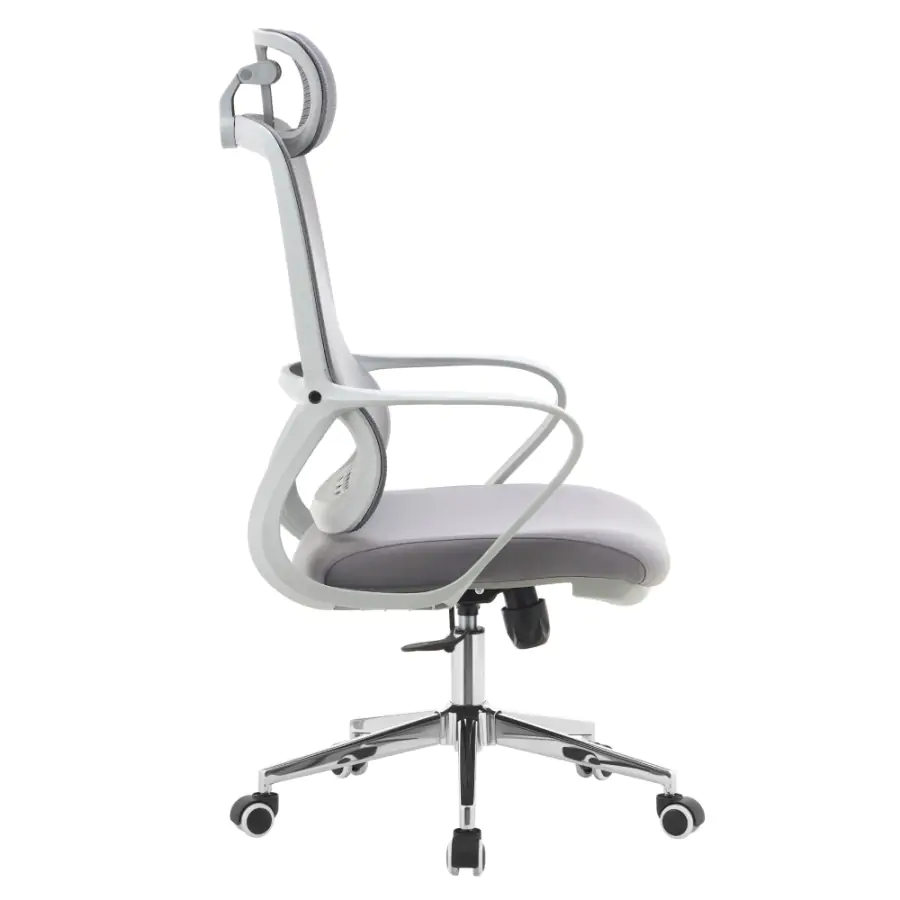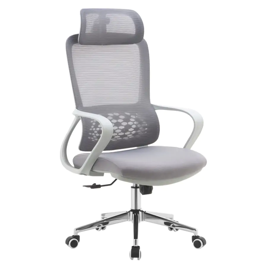 Kancelářské křeslo FOSTER TYP 1 je navrženo pro ty, kteří chtějí sedět pohodlně a zdravě i během dlouhých pracovních hodin. Díky nastavitelné opěrce hlavy a ergonomicky tvarované bederní části podporuje správné držení těla a ulevuje páteři. Kombinace šedé síťoviny a látky s chromovou podstavou působí elegantně, zatímco univerzální kolečka jsou uzpůsobena pro tvrdé i měkké podlahy, takže pohyb po kanceláři bude plynulý a bez námahy.