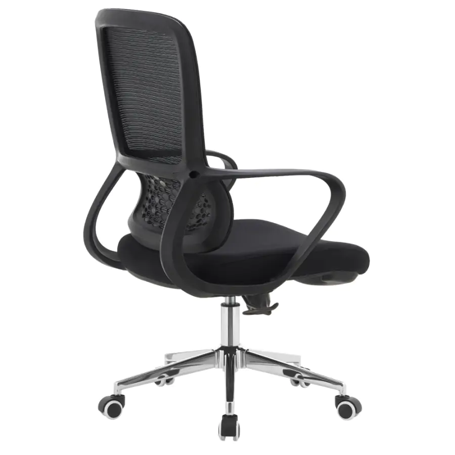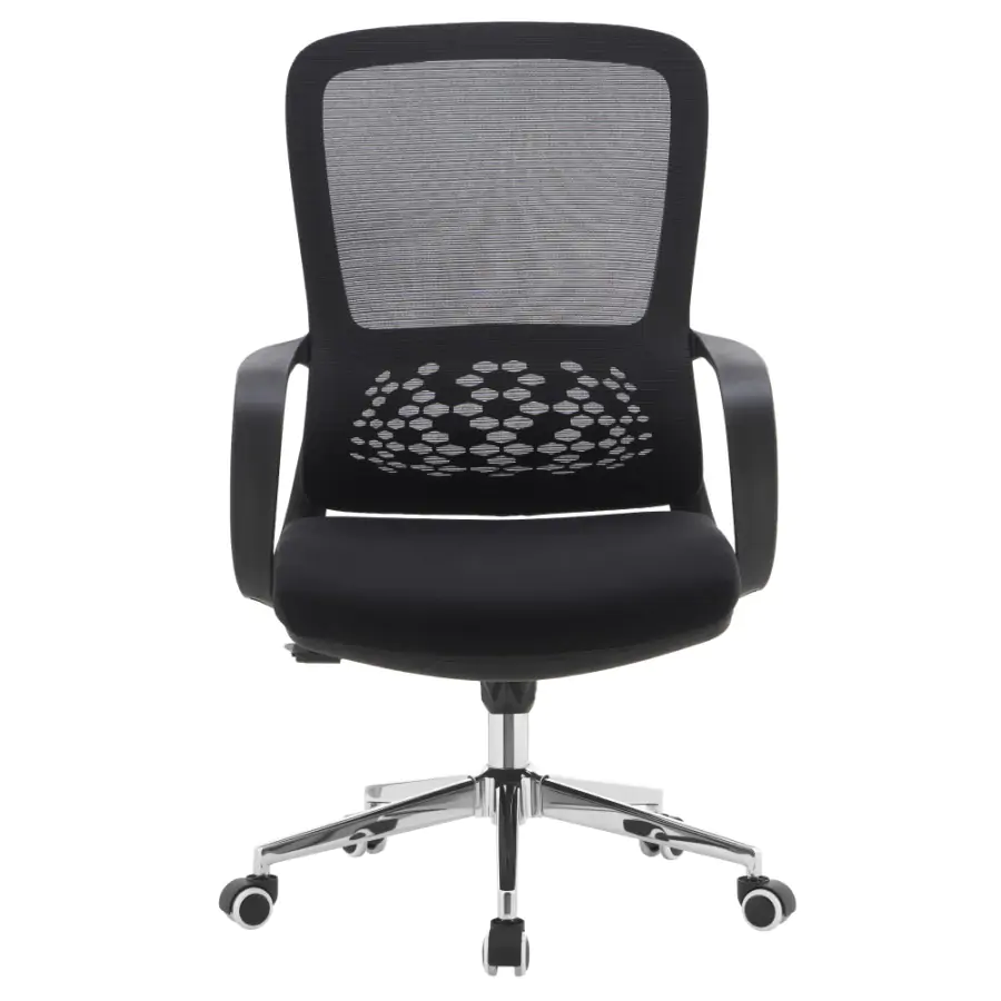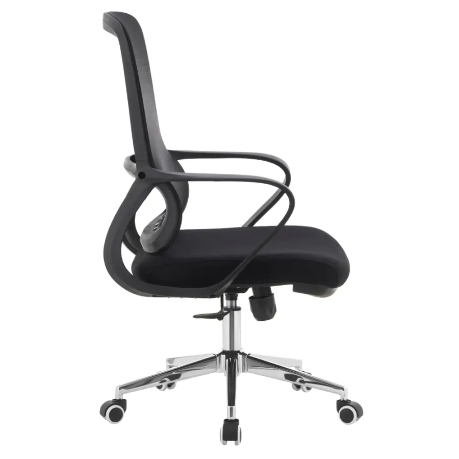Elegantní kancelářské křeslo FOSTER TYP 2 je ideální volbou pro každého, kdo tráví spoustu času při práci za stolem a nechce dělat kompromisy mezi komfortem a zdravým sezením. Ergonomicky tvarovaná bederní opěrka zajišťuje správné držení těla a odlehčuje páteř, zatímco kombinace černé síťoviny a látky doplněná o chromovou podstavu přináší stylový a elegantní vzhled.