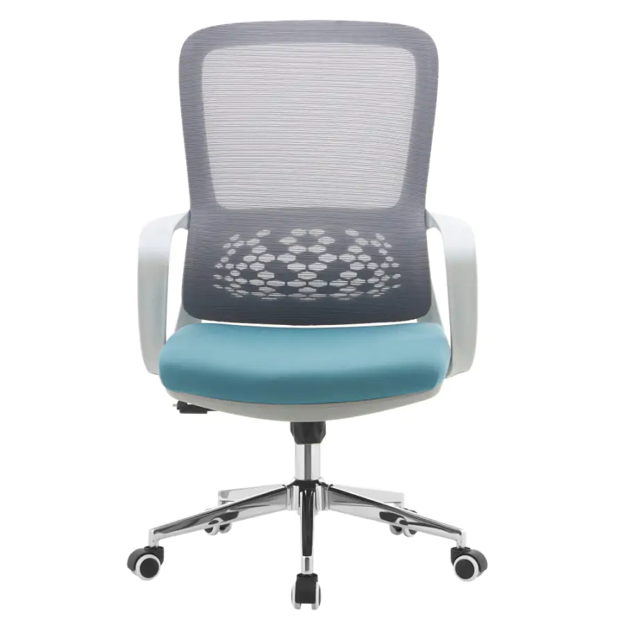 Elegantní kancelářské křeslo FOSTER TYP 2 je ideální volbou pro každého, kdo tráví spoustu času při práci za stolem a nechce dělat kompromisy mezi komfortem a zdravým sezením. Ergonomicky tvarovaná bederní opěrka zajišťuje správné držení těla a odlehčuje páteř, zatímco kombinace šedé síťoviny a modré látky doplněná o chromovou podstavu přináší stylový a elegantní vzhled.