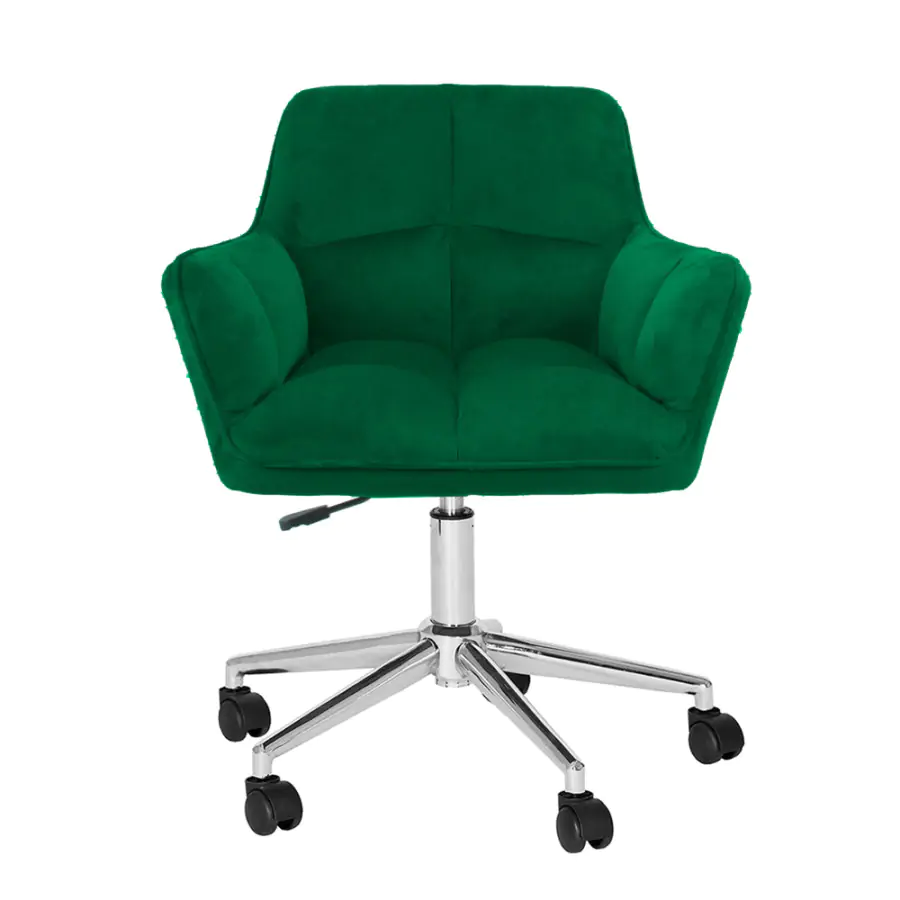 Stylové kancelářské křeslo HAGRID NEW dokonale čalouněné příjemnou sametovou látkou VELVET smaragdovou perfektně doplňuje chrom. Kovová robustní podnož s praktickými kolečky je pro křeslo dobrou základnou.