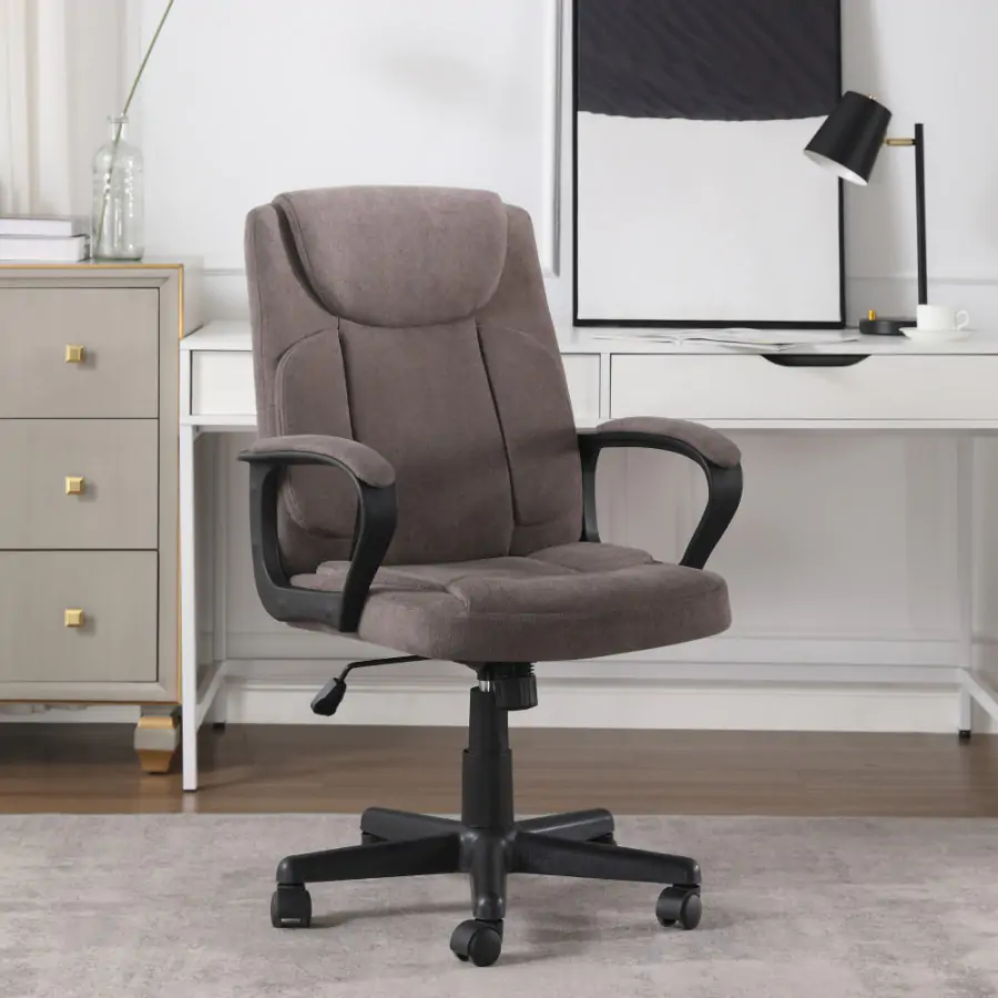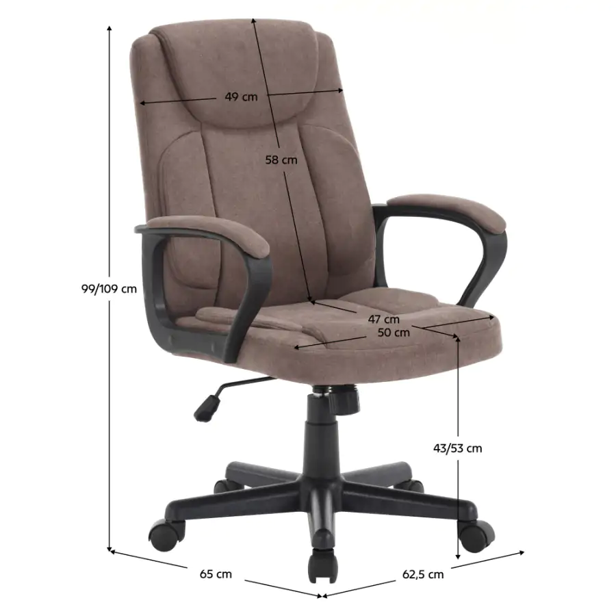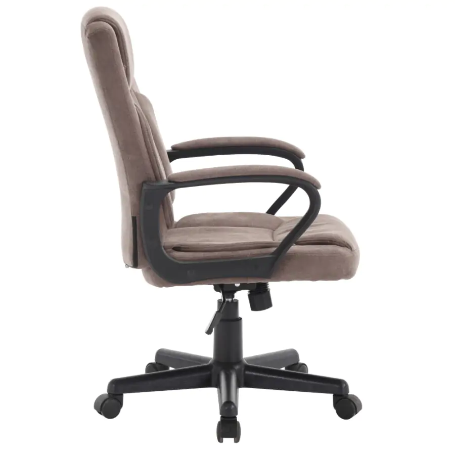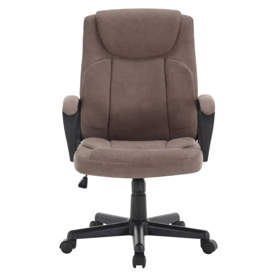 Elegantní a pohodlné kancelářské křeslo ULGER s čalouněnými opěrkami na ruce je ideální volbou pro dlouhé hodiny práce v kanceláři nebo doma. Hnědá látka dodává křeslu sofistikovaný vzhled, zatímco černá plastová podstava se podepisuje na stabilitě a odolnosti při používání. Pohodlí a podpora při dlouhém sezení se zvyšuje díky praktické funkci houpání a nastavení výšky sedu, které umožňují individuální přizpůsobení křesla podle vašich potřeb.