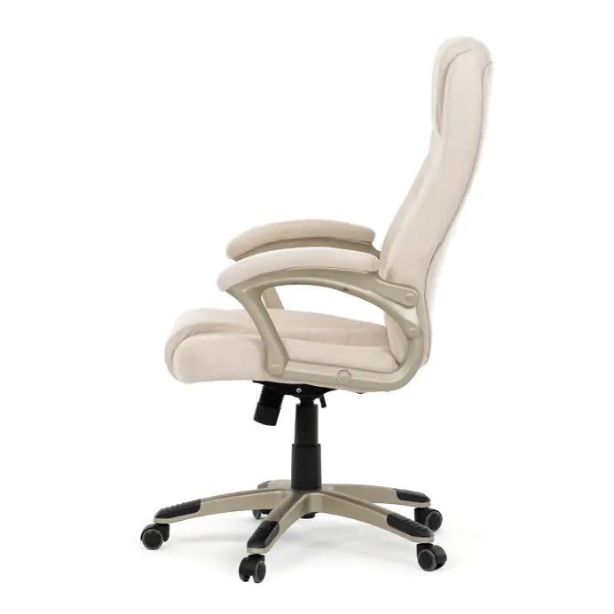 Kancelářské křeslo KA-C713 CRM2 v béžovém provedení kombinuje komfort s praktickým designem vhodným pro dlouhodobé sezení. Čalounění z kvalitní látky zajišťuje příjemný povrch a snadnou údržbu, zatímco pevné područky s měkkým polstrováním podporují pohodlí paží. Vysoký opěrák je doplněn pevnou opěrkou hlavy s vyměkčenou vrchní částí, která přispívá k lepší podpoře krční páteře.