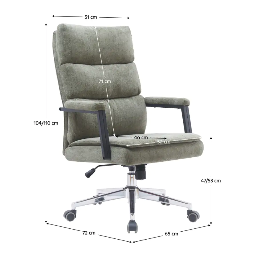 Moderní design, funkčnost a pohodlí přichází v podobě kancelářského křesla ZAVIER. Čalouněné je kvalitní zelenošedou látkou, která působí elegantně a stylově. Stabilitu křesla zajišťuje kovová konstrukce v chromovém provedení ukončená univerzálními kolečky. Univerzální kolečka jsou vhodná pro tvrdé i měkké podlahy.