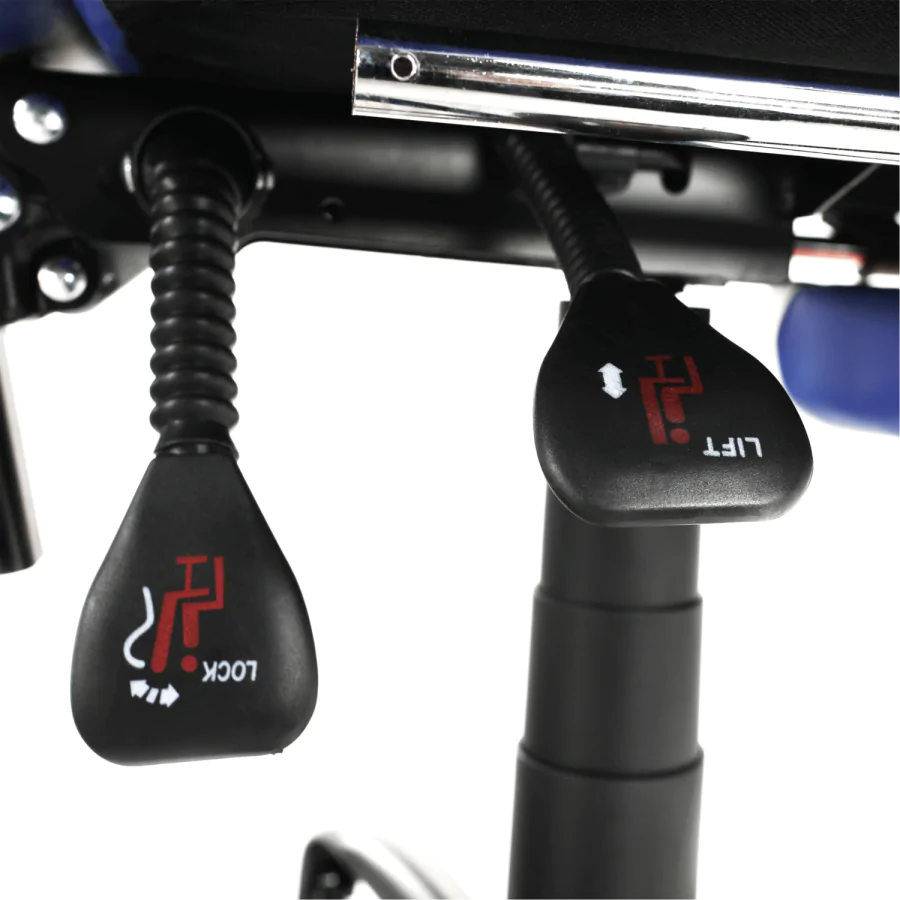 Polštářky lze výškově nastavit podle potřeby díky popruhům, které jsou na opěradle.