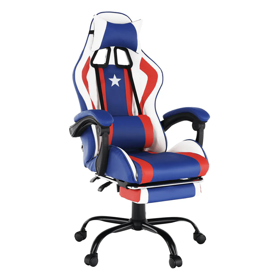 Herní křeslo CAPTAIN - modrá/červená/bílá - rozbaleno