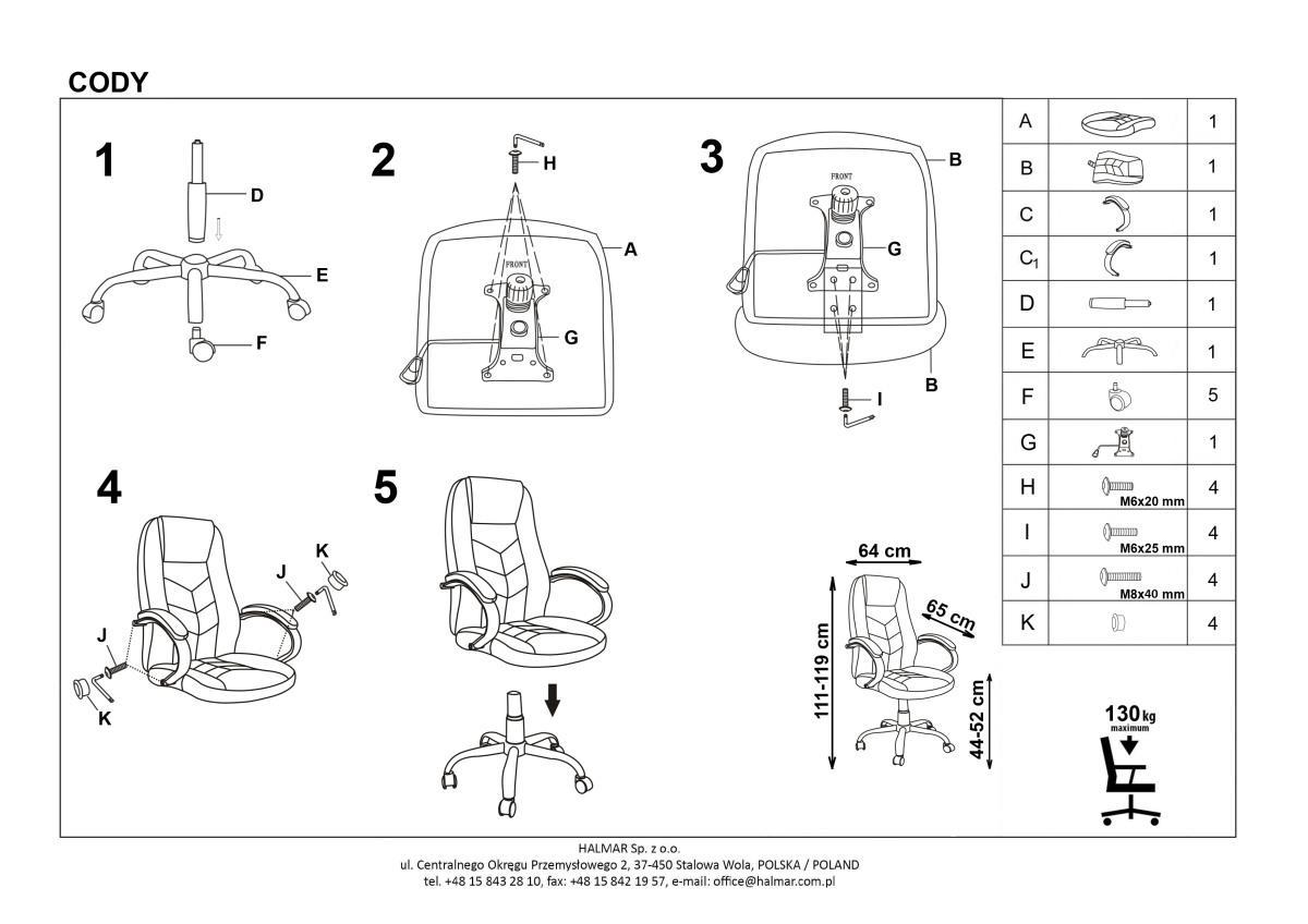 Křeslo je určeno k sezení v jednosměnném provozu a v běžném kancelářském prostředí, či domácnosti.