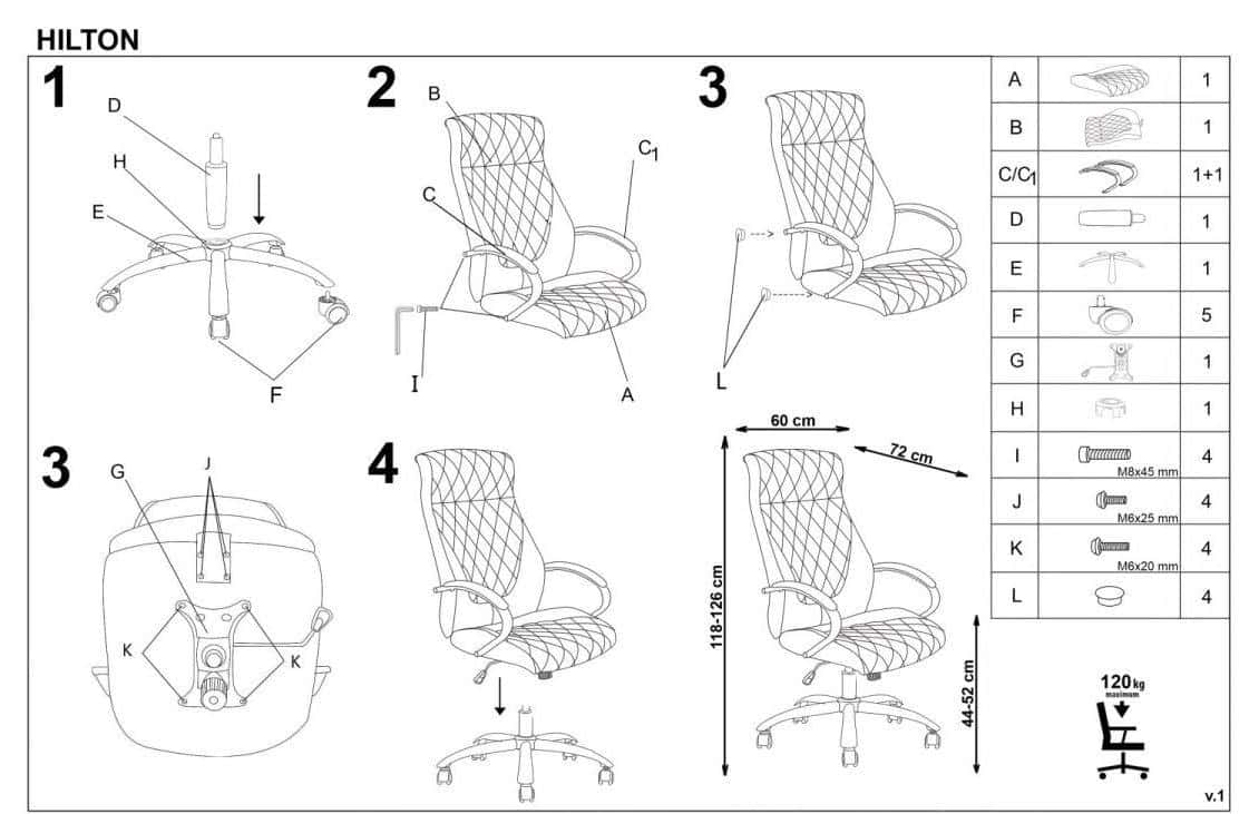Dostatečně velký sedák a vysoký opěrák jsou potaženy kvalitní eko kůží v čokoládové barvě. Křeslo je vybaveno mechanikou TILT, která umožňuje snadné nastavení výšky sedáku dle potřeb sedícího.