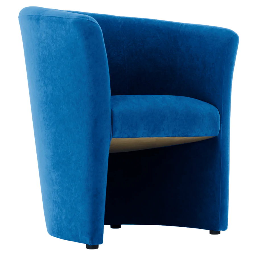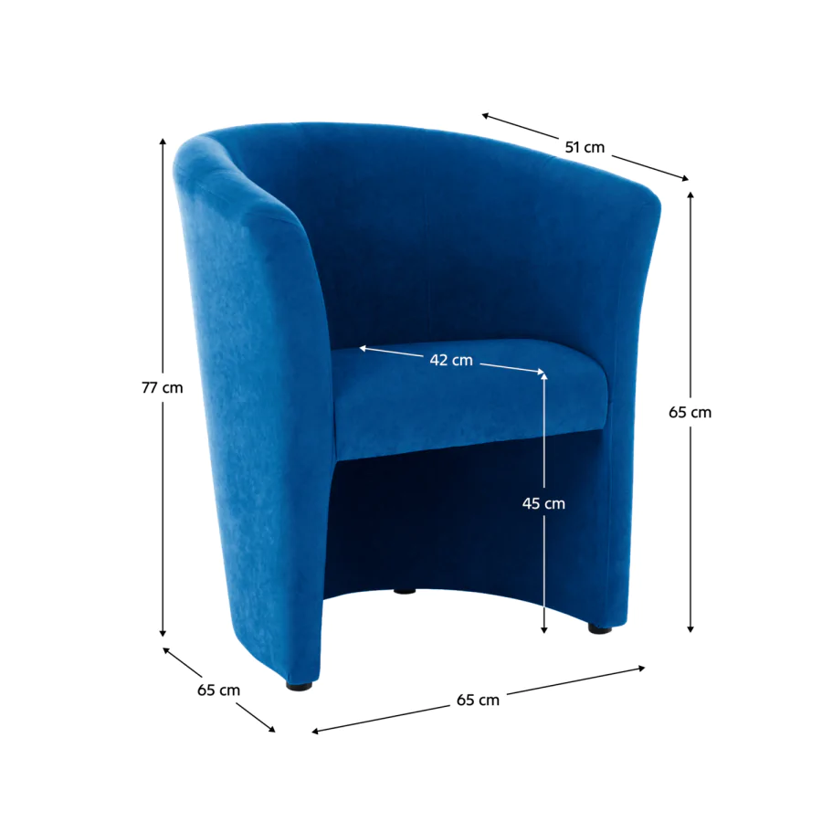 Elegantní křeslo Cuba je čalouněno modrou látkou. Skvěle se hodí jak do moderních, tak klasických interiérů.