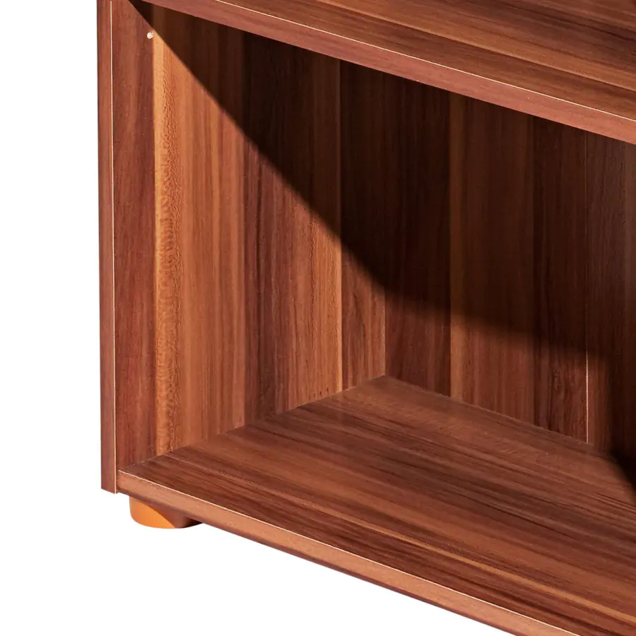 Knihovna je vyrobená z laminované dřevotřísky v barevném provedení ořech. Otevřená police disponuje třemi variabilně nastavitelnými policemi.