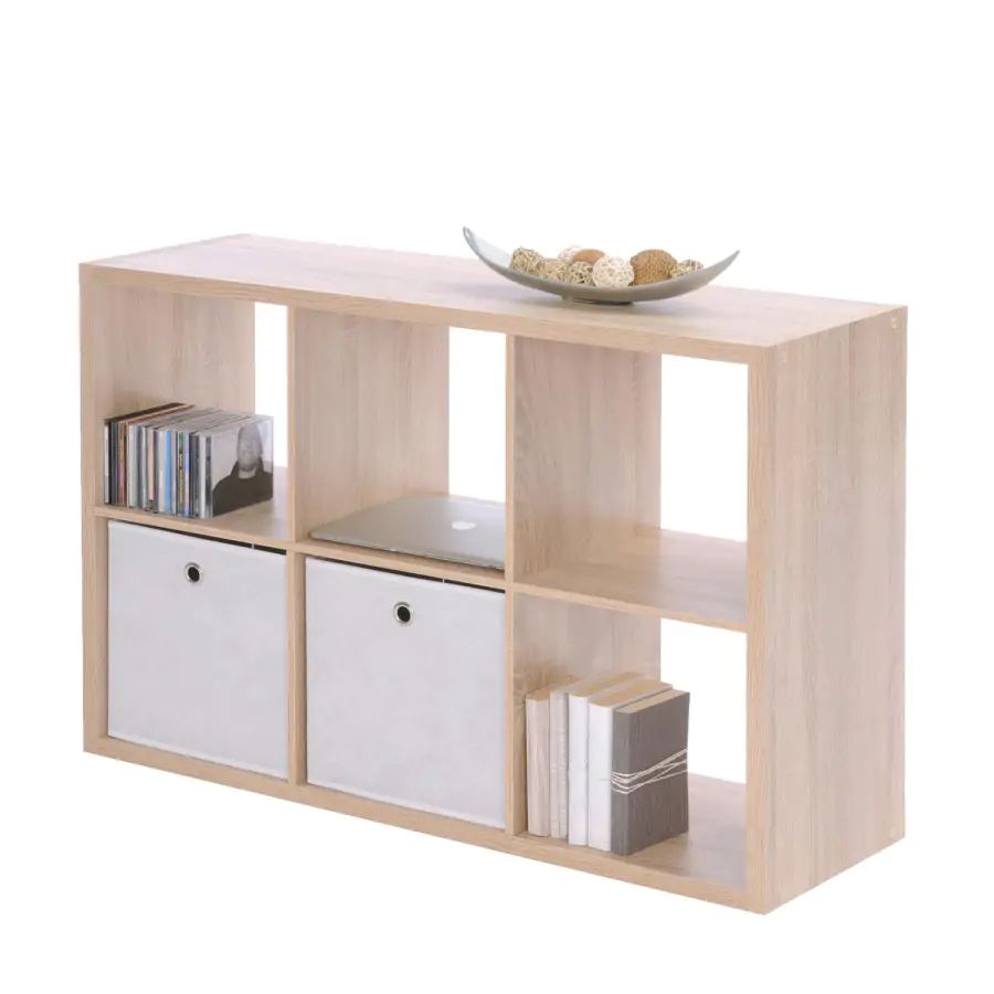 Knihovna Max je vyrobená z laminované dřevotřísky v barevném provedení dub sonoma. Otevřená knihovna je rozdělena na šest stejně velkých částí. Tyto police je vhodné kombinovat s úložnými boxy Winny.