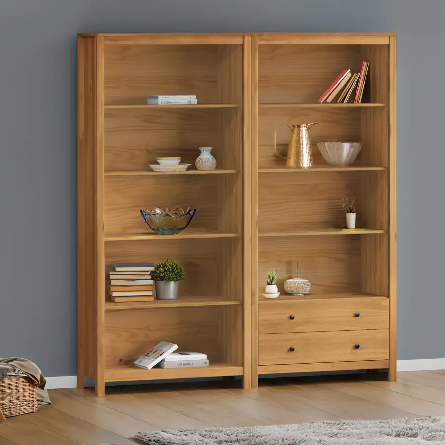 Knihovna TORINO ve voskovém provedení v medovém odstínu je vybavena 4 policemi. Je vyrobena z masivní borovice a působí robustním dojmem.