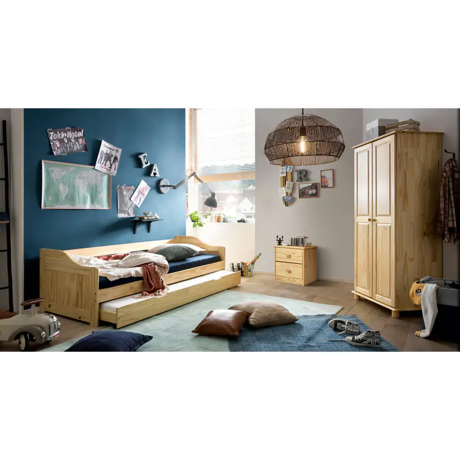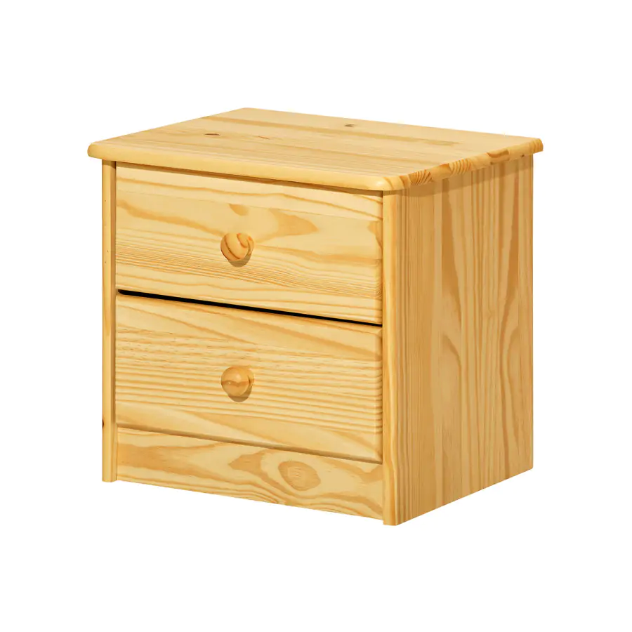 Noční stolek z masivní borovice, lakované provedení 2 zásuvky s kovovými pojezdy, hloubka zásuvky 27,5 cm