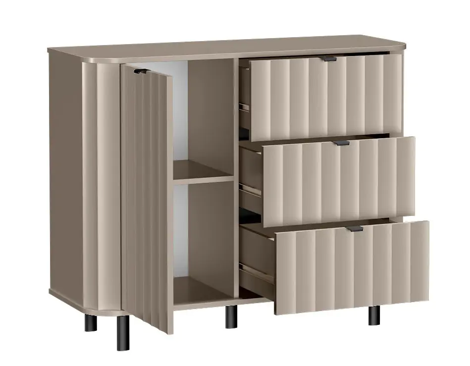 Komoda JOLY, příběh harmonie a charakteru. Kolekce nábytku JOLY do obývacího pokoje, která spojuje eleganci a funkčnost. Jejím charakteristickým prvkem jsou frézované, fóliované čelní desky z MDF...