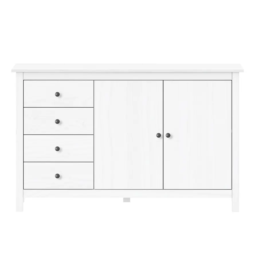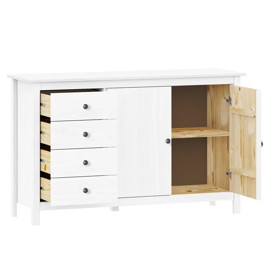 Bílé komody nahradí nudné příborníky i velké skříně. Komoda TORINO v barevném provedení bílá obsahuje 4 zásuvky s kovovými pojezdy a dva úůpžný prostor opatřený dvířky, s přehledem tak nahradí jak prádelník, tak příborník.